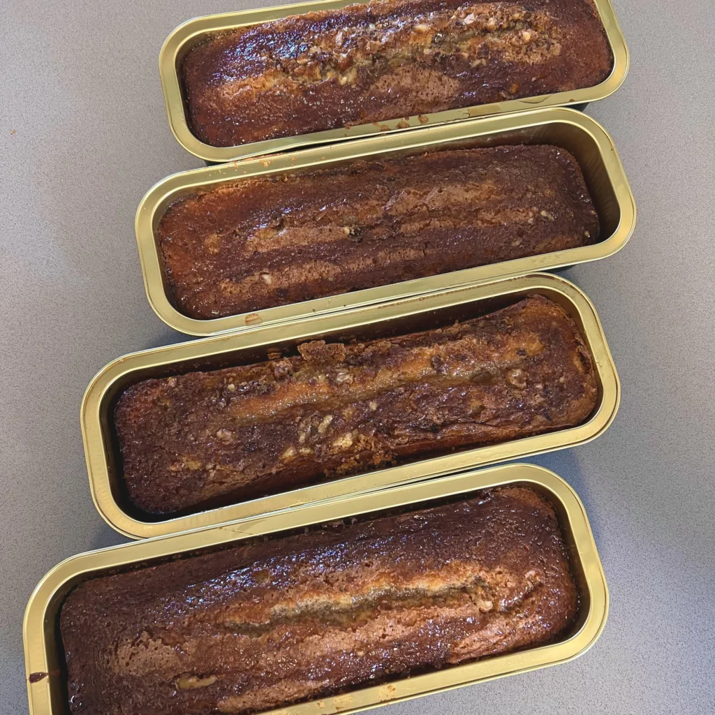4. צקו ל2 תבניות אינגליש קייק משומנות את הבלילה ופזרו מעט אגוזים/פקאנים/פקאנים מסוכרים