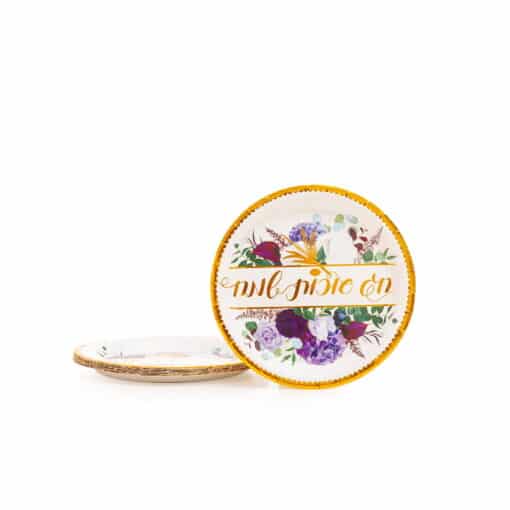 חבילת 10 צלחות נייר 18 ס"מ- סוכות שמח פרחים