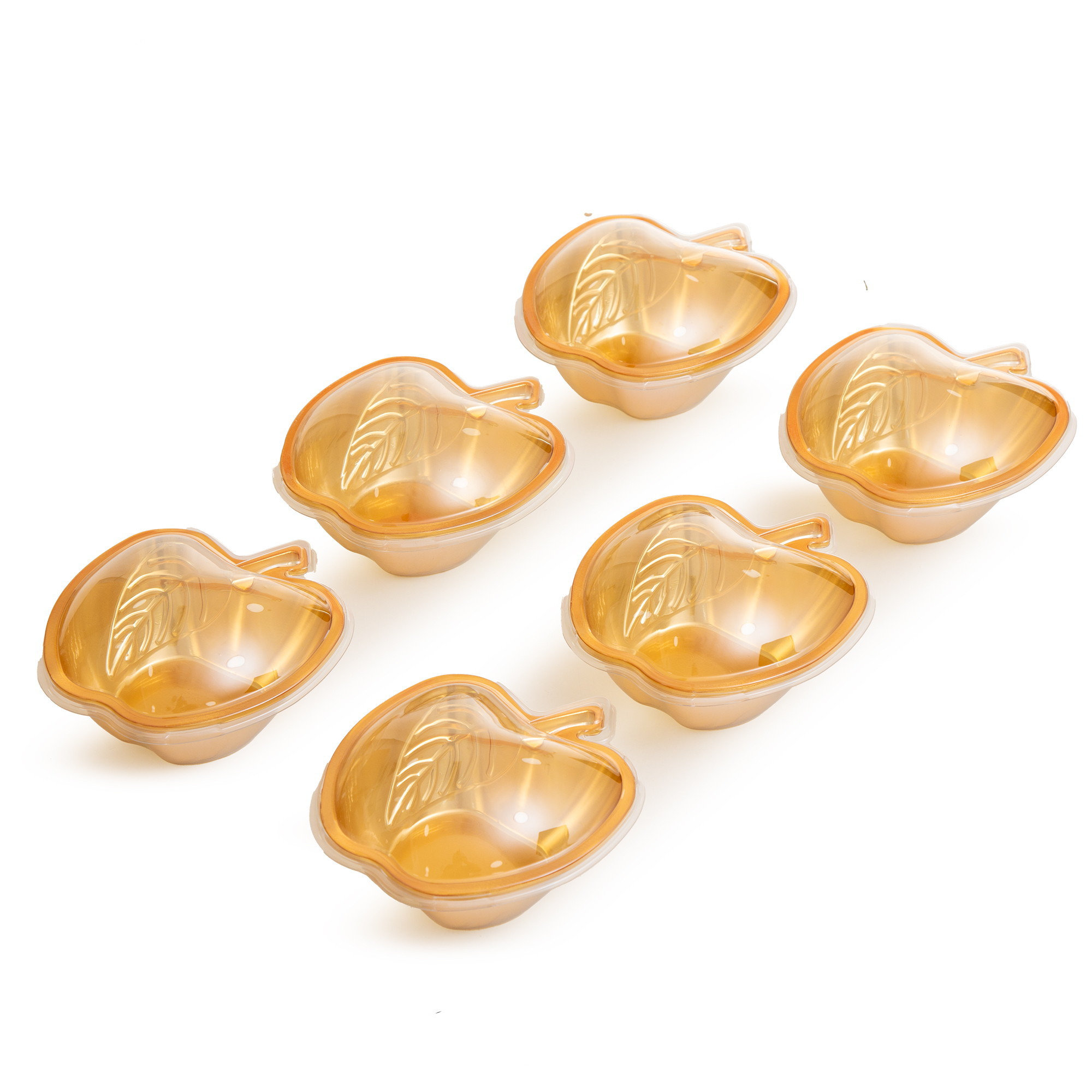 כמות של חבילת 6 כלי פלסטיק בצורת תפוח+ מכסה- זהב