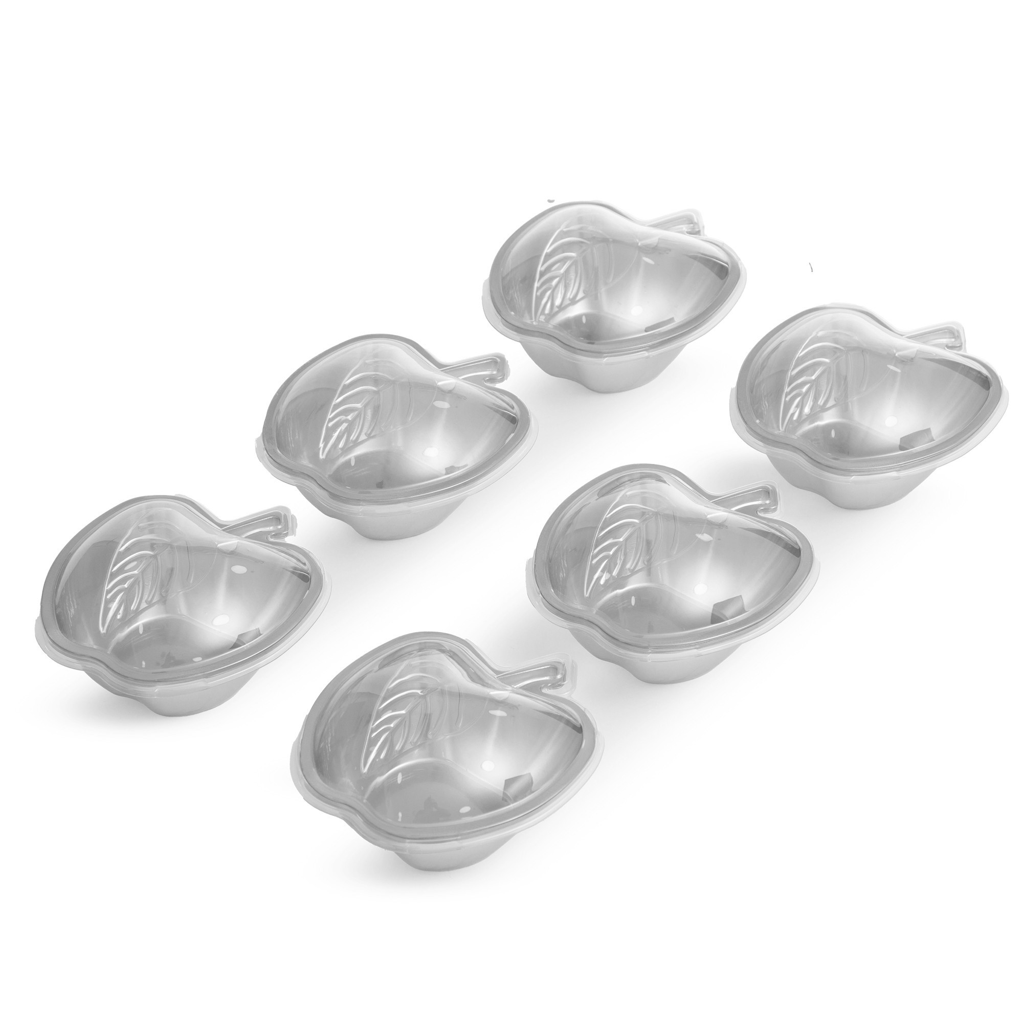 חבילת 6 כלי פלסטיק בצורת תפוח+ מכסה- כסף
