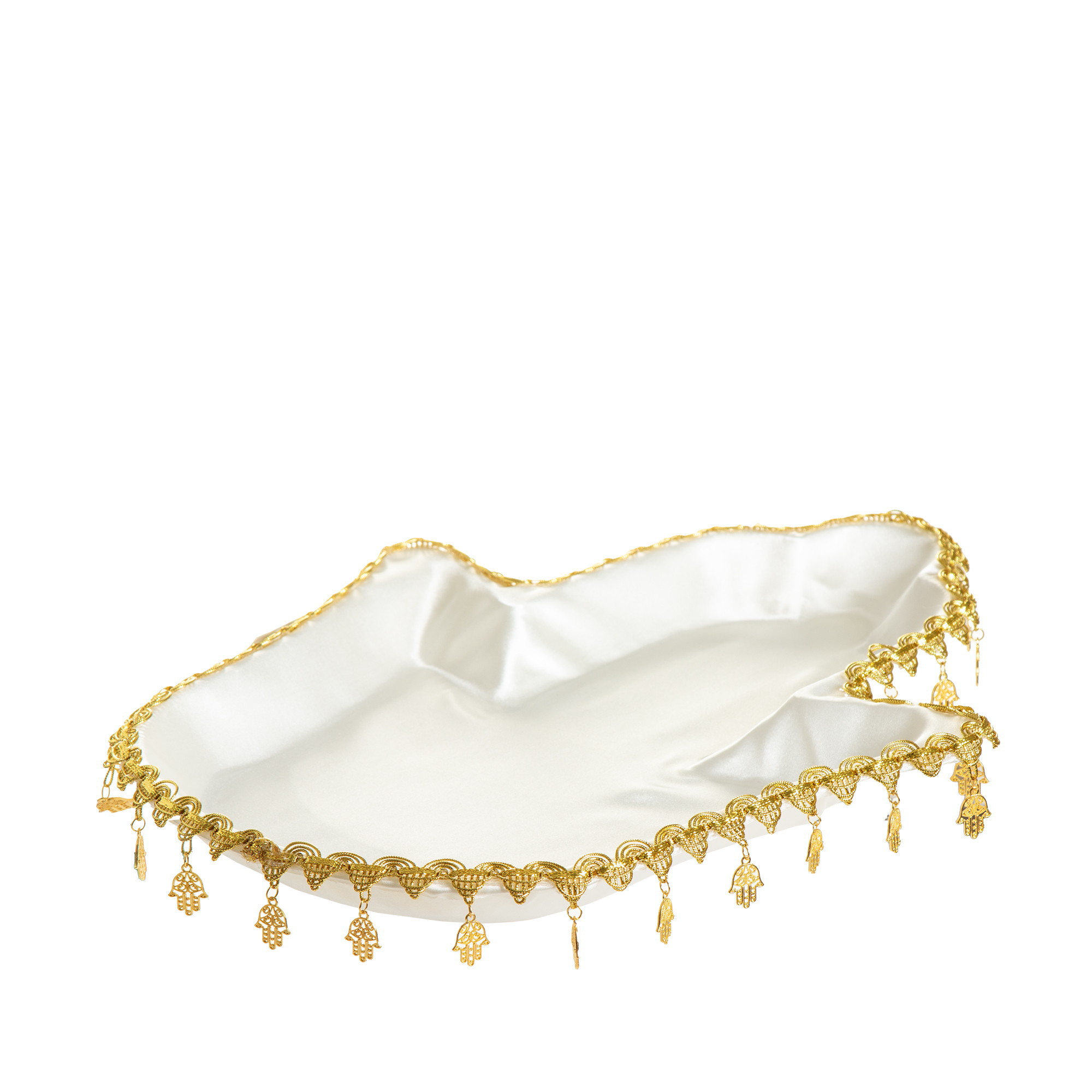3 מגשי חינה חמסה מצופים בד קרם- עיטורי חמסות לחגיגת מימונה | חינה רוחב- 39 ס"מ אורך- 30 ס"מ גובה- 3 ס"מ