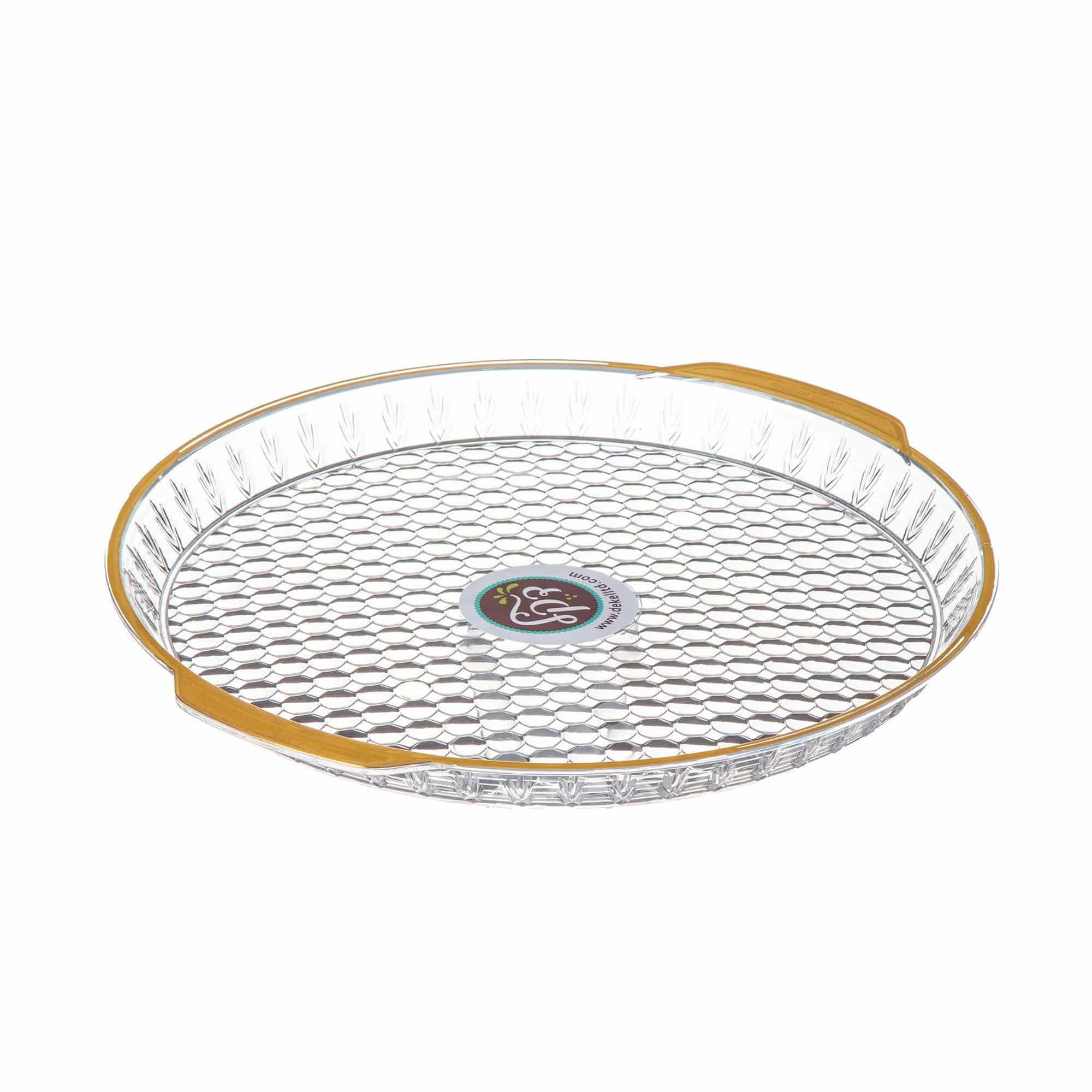 מגש פלסטיק עגול מסגרת זהב לחגיגת מימונה | חינה קוטר- 27 ס"מ גובה- 2.5 ס"מ