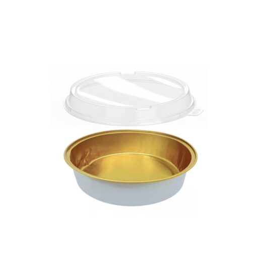100 תבניות אלומיניום לאפיה קרם/זהב+ מכסה קוטר.11.8 גובה 3 ס"מ-250 מ"ל