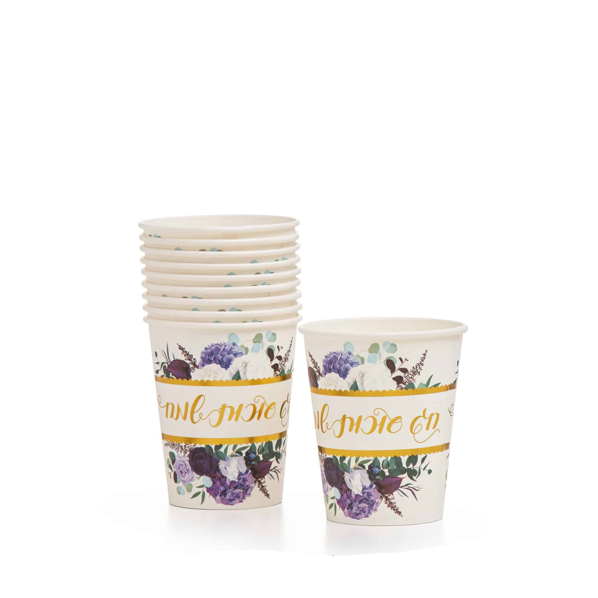 חבילת 10 כוסות נייר סוכות שמח- פרחים