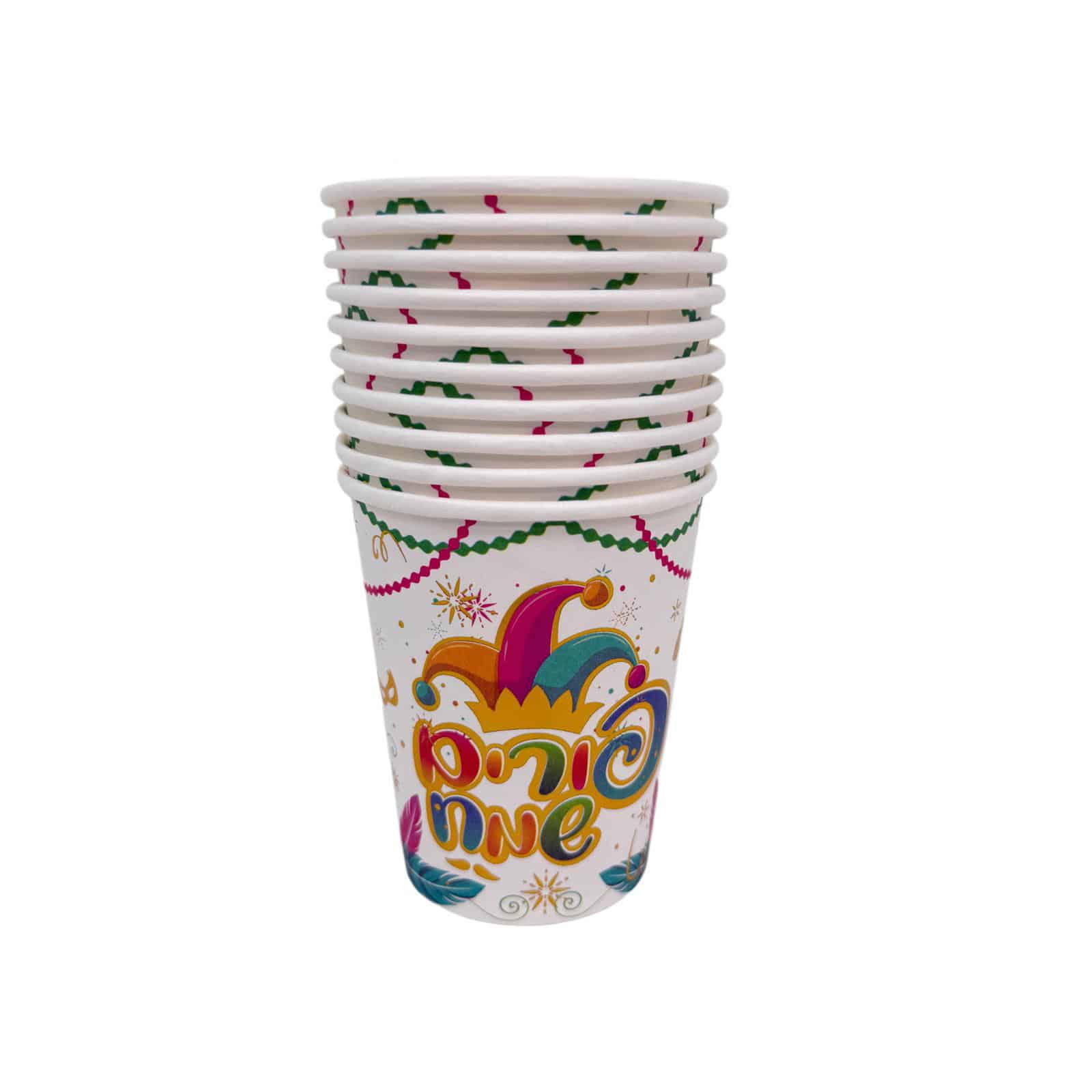 / חבילת 10 כוסות נייר- פורים שמח דגם כובע ליצן