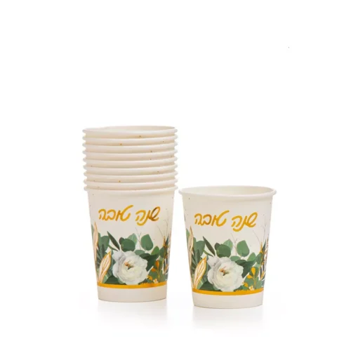 / חבילת 10 כוסות נייר -שנה טובה פרחים זהב