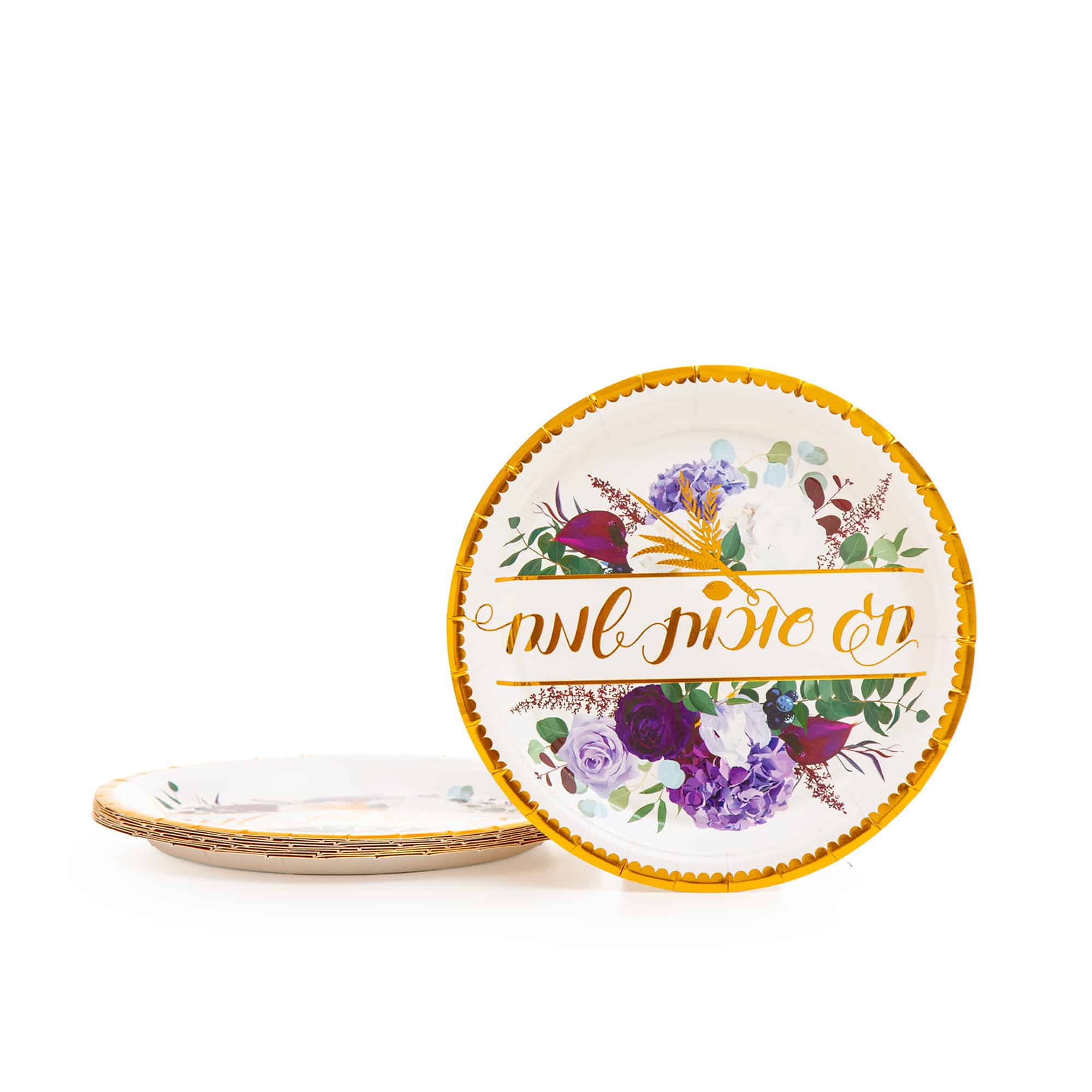 חבילת 10 צלחות נייר 23 ס"מ- סוכות שמח פרחים