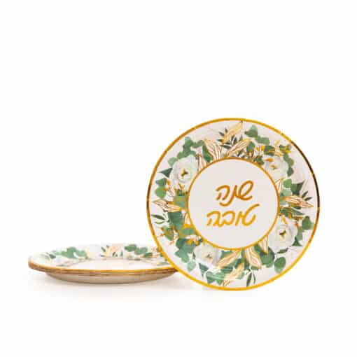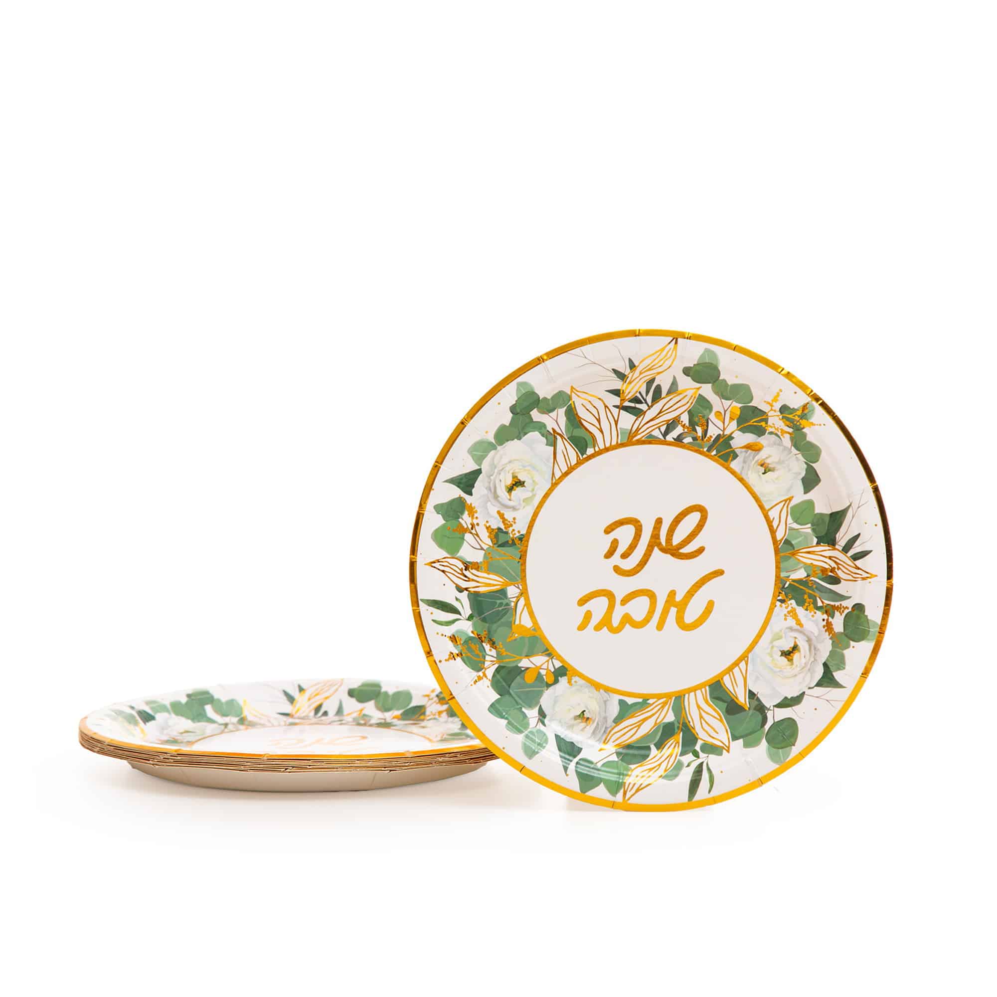 / חבילת 10 צלחות נייר 23 ס"מ-שנה טובה פרחים זהב