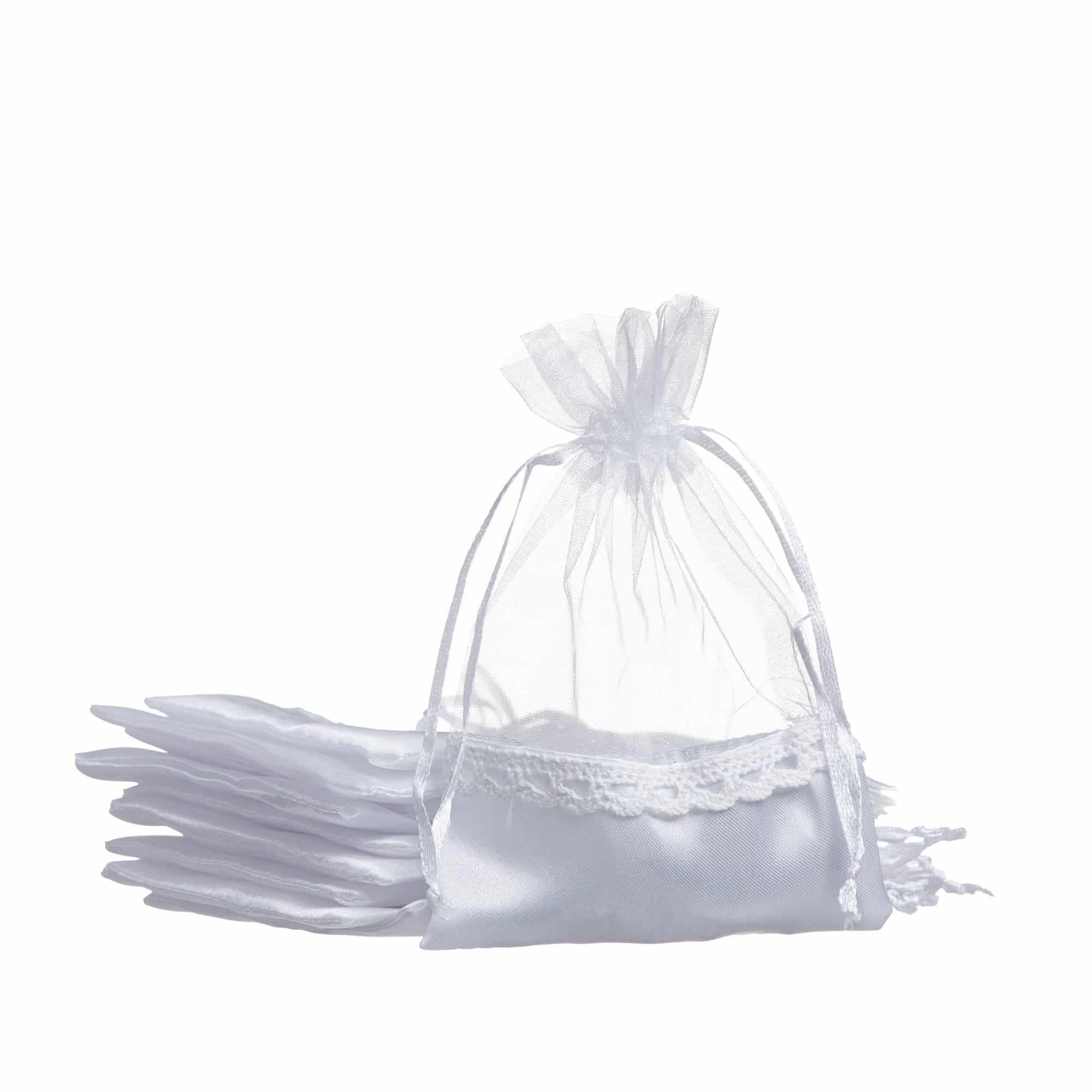 חבילת 10 שקיות אורגנזה+ תחתית בד 10/13 ס"מ-לבן
