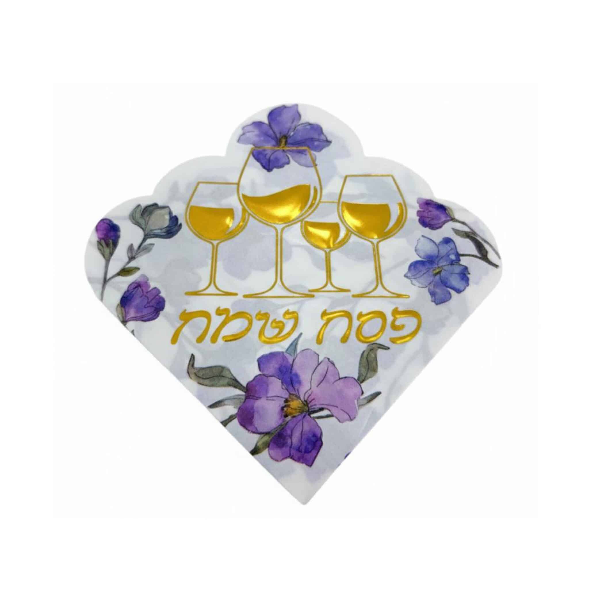חבילת 16 מפיות נייר גלים- פסח שמח ארבע כוסות ופרחים