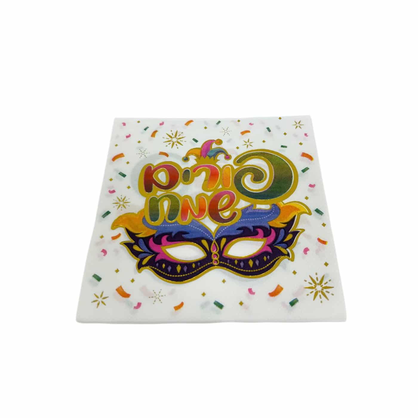חבילת 16 מפיות נייר 33/33 ס"מ 2 שכבות- פורים שמח מסכה