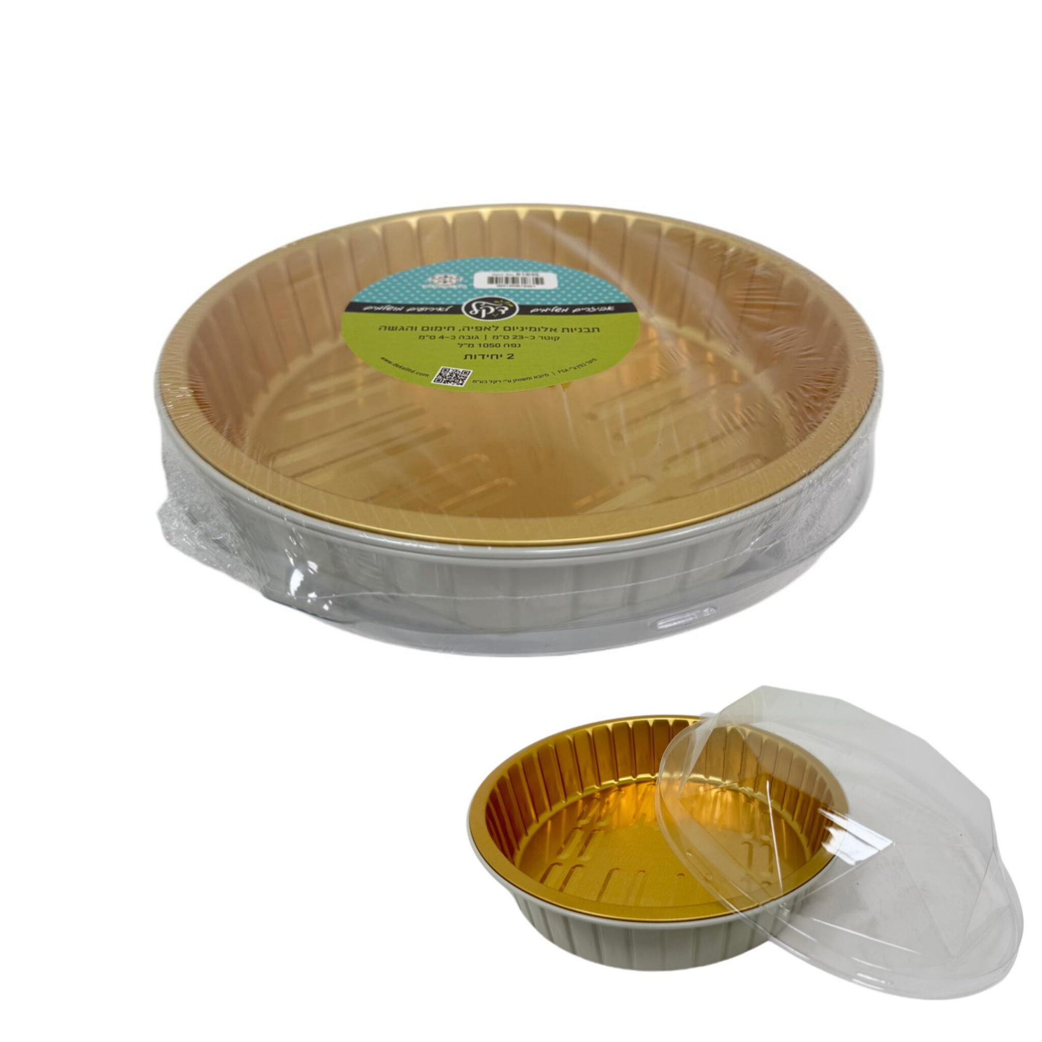 חבילת 2 תבניות אלומיניום קרם/זהב+מכסה יהלום קוטר 23 ס"מ גובה 4 ס"מ 1050 מ"ל