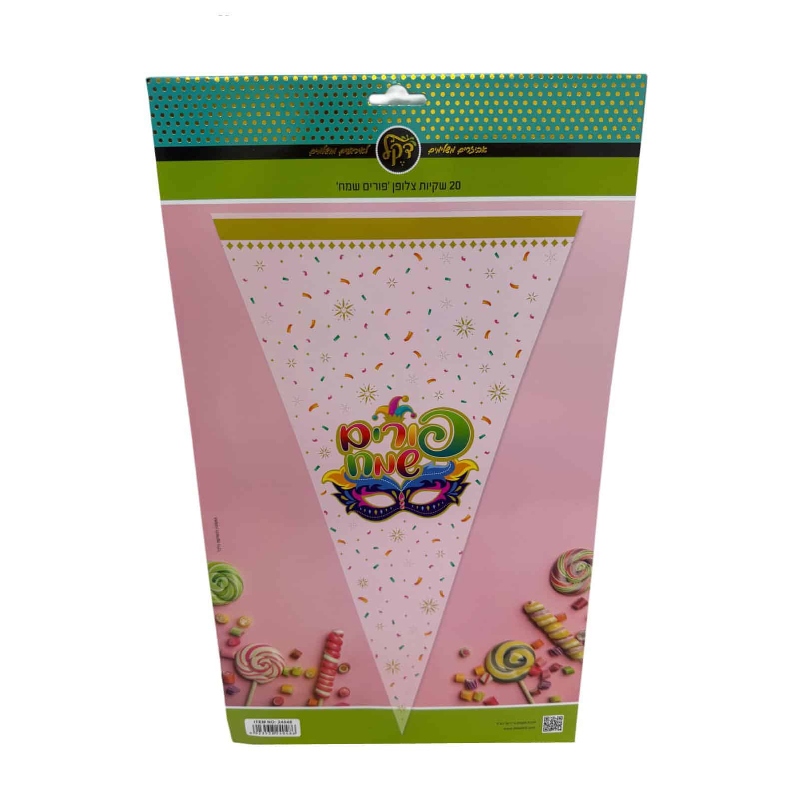 כמות של חבילת 20 שקיות צלופן משולשות- פורים שמח מסכה