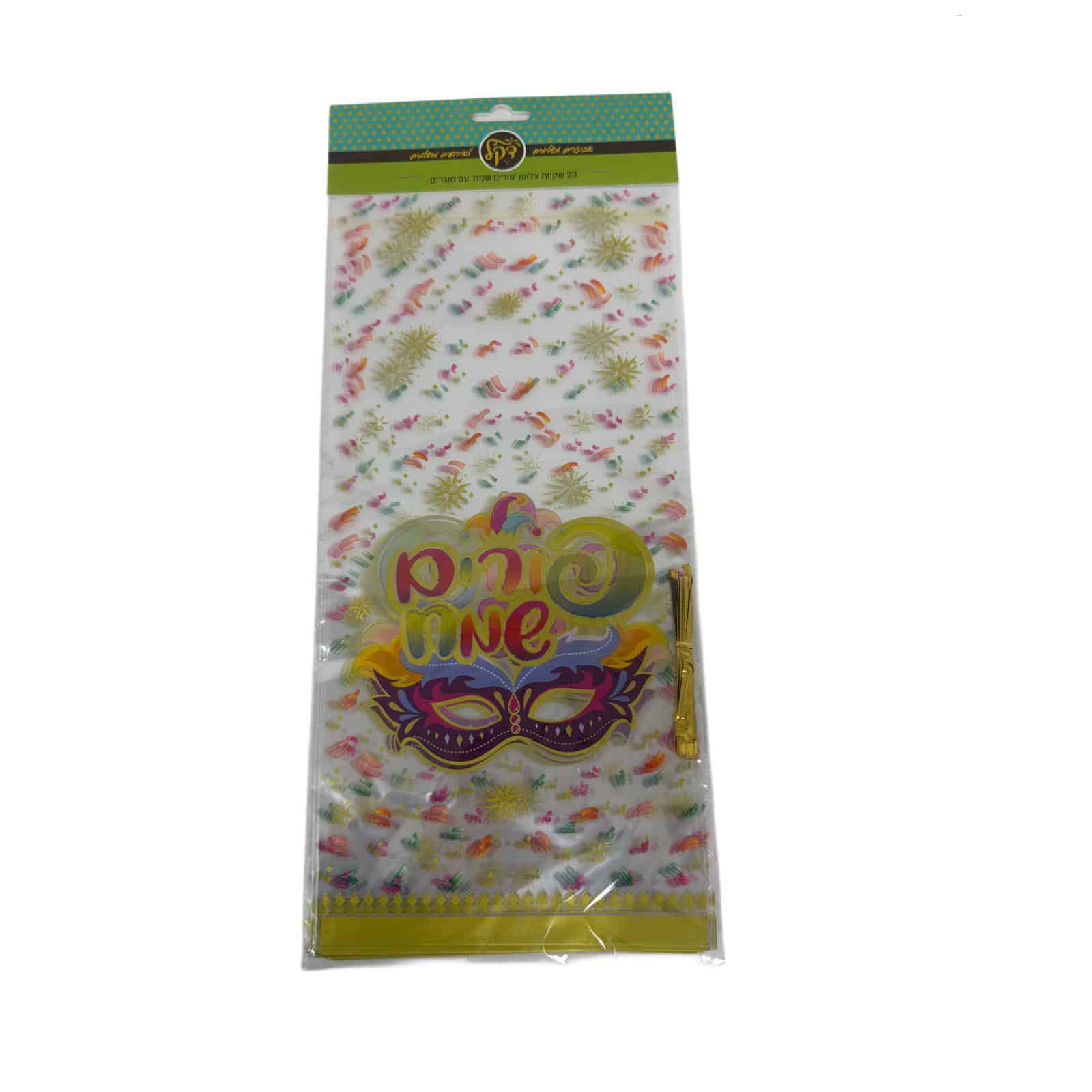/ חבילת 20 שקיות צלופן- פורים שמח מסכה