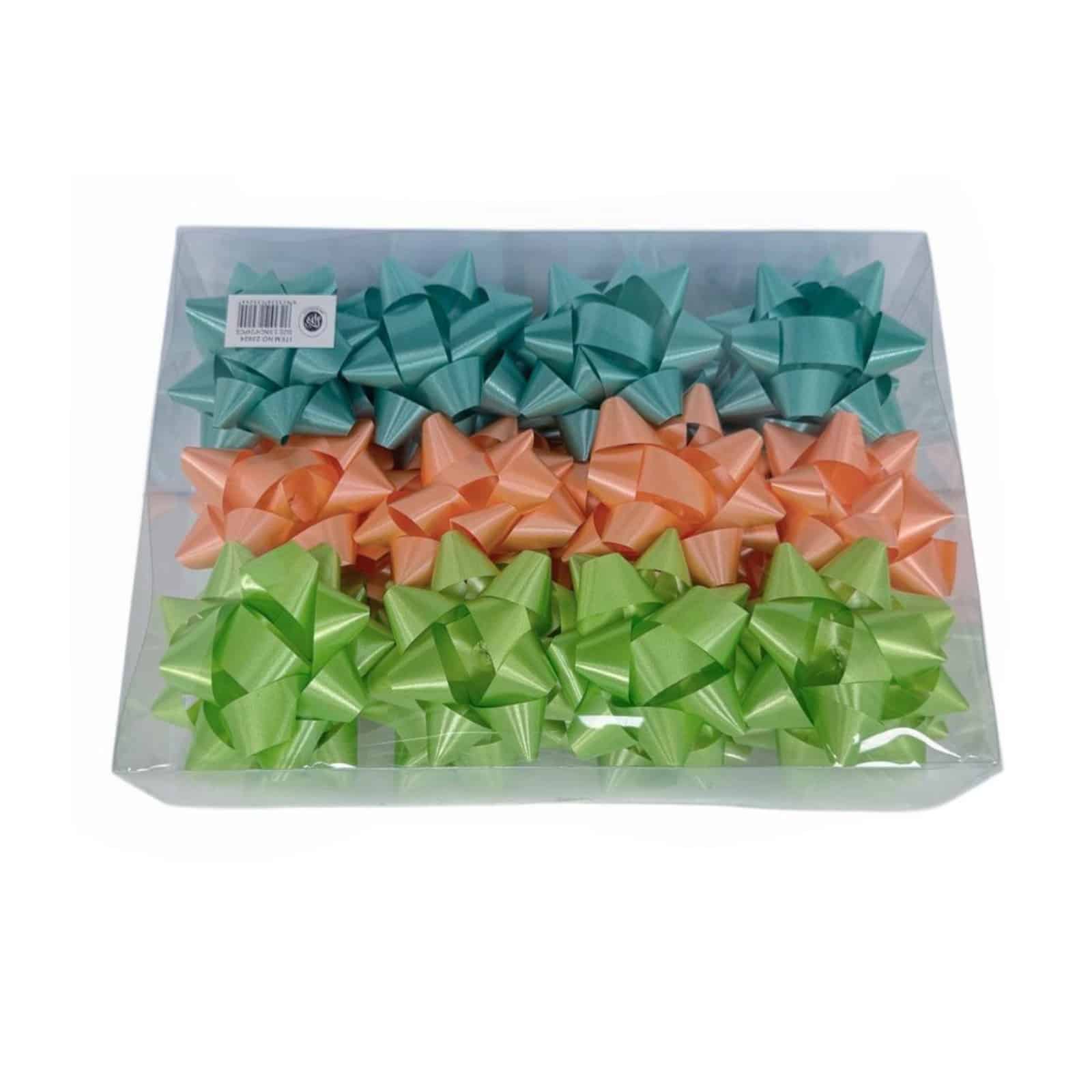 חבילת 24 מדבקות פרחים 8 ס"מ- 3 צבעים: תכלת, כתום, ירוק