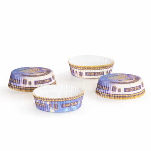 חבילת 24 מנג'טים לסופגניות קוטר 11 ס"מ גובה 3 ס"מ חנוכה שמח כחול/זהב