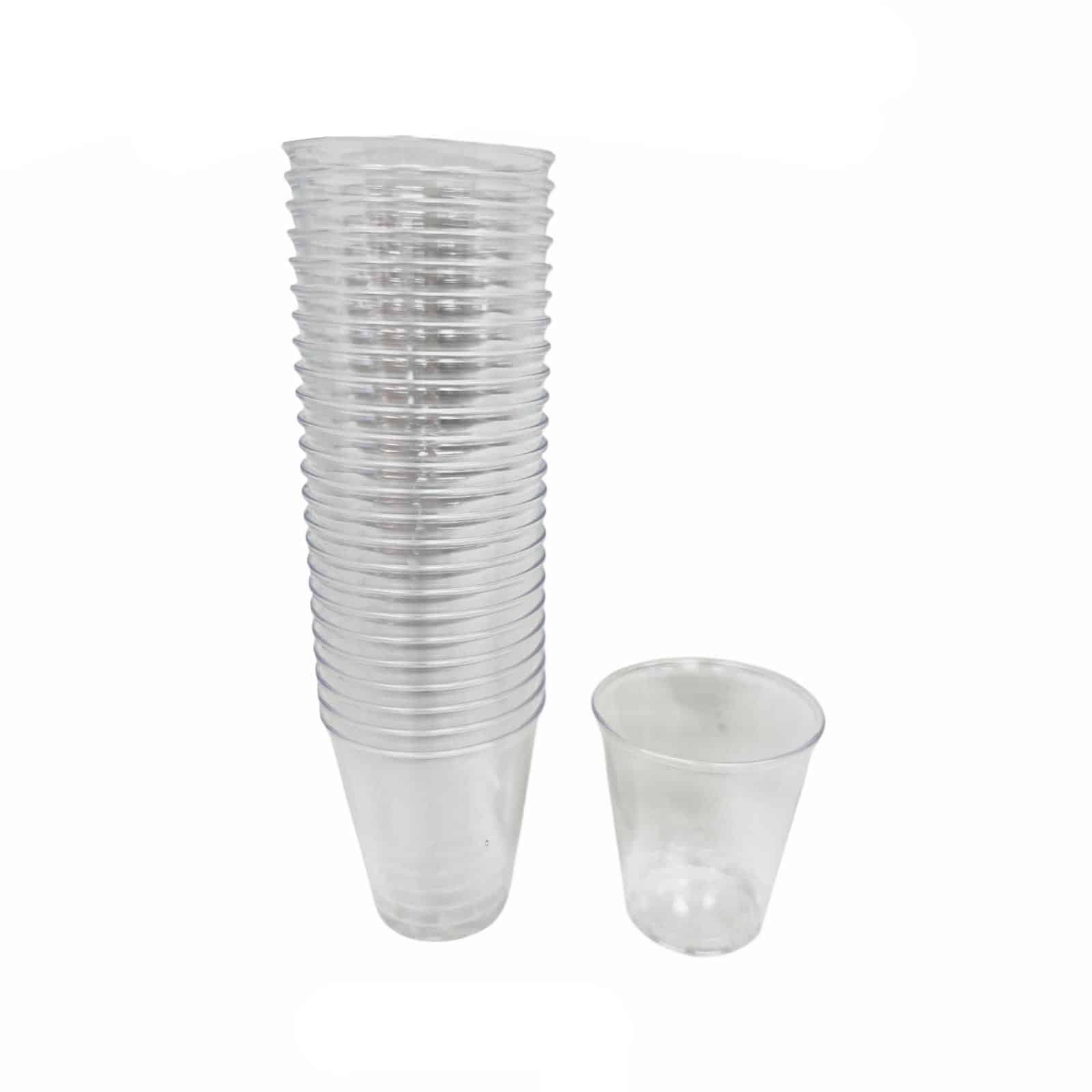 חבילת 25 כוסות שוט מפלסטיק קוטר 4.5 גובה 5 ס"מ כ45 מ"ל