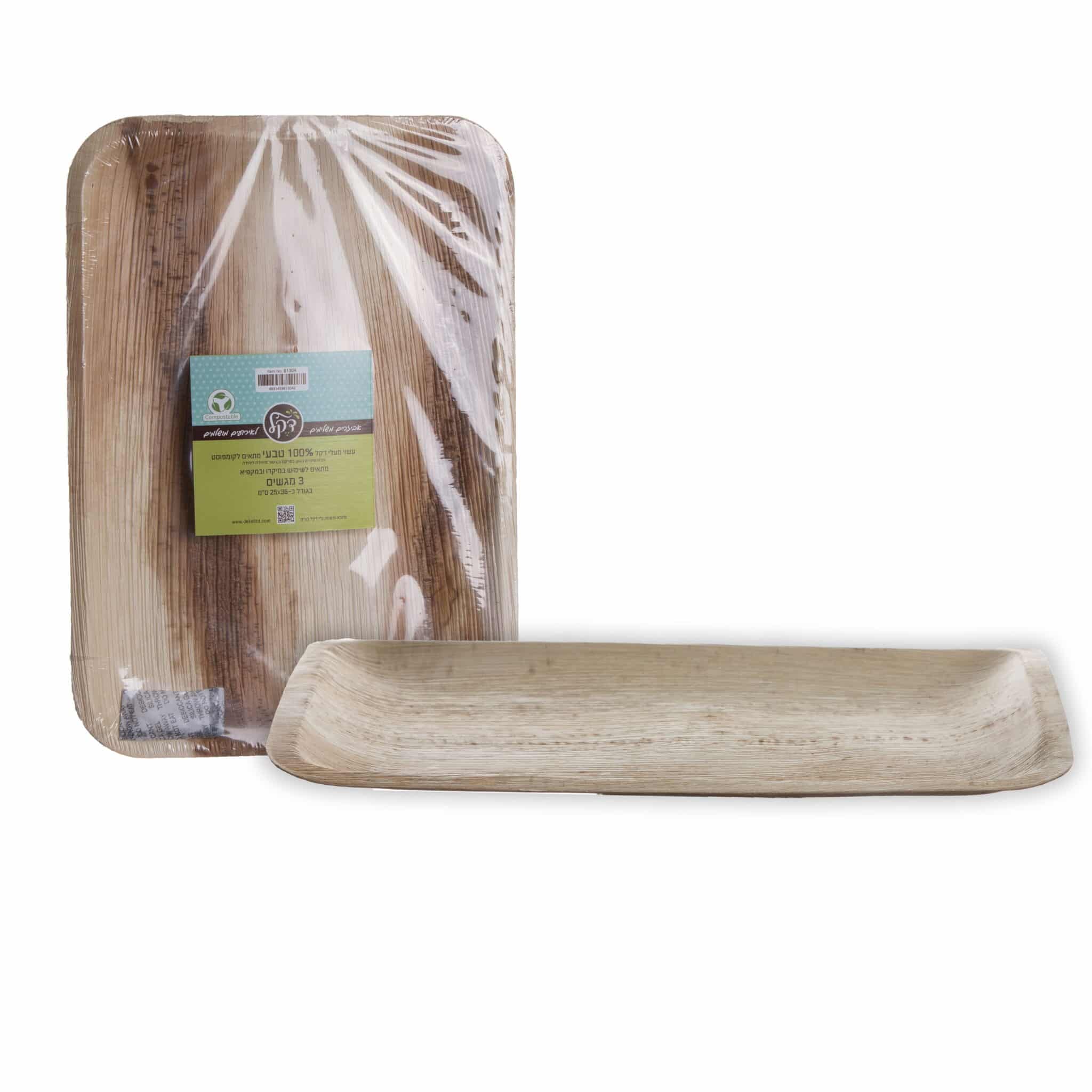 חבילת 3 מגשים מלבניים מענפי דקל רוחב 36 ס"מ אורך 25 ס"מ
