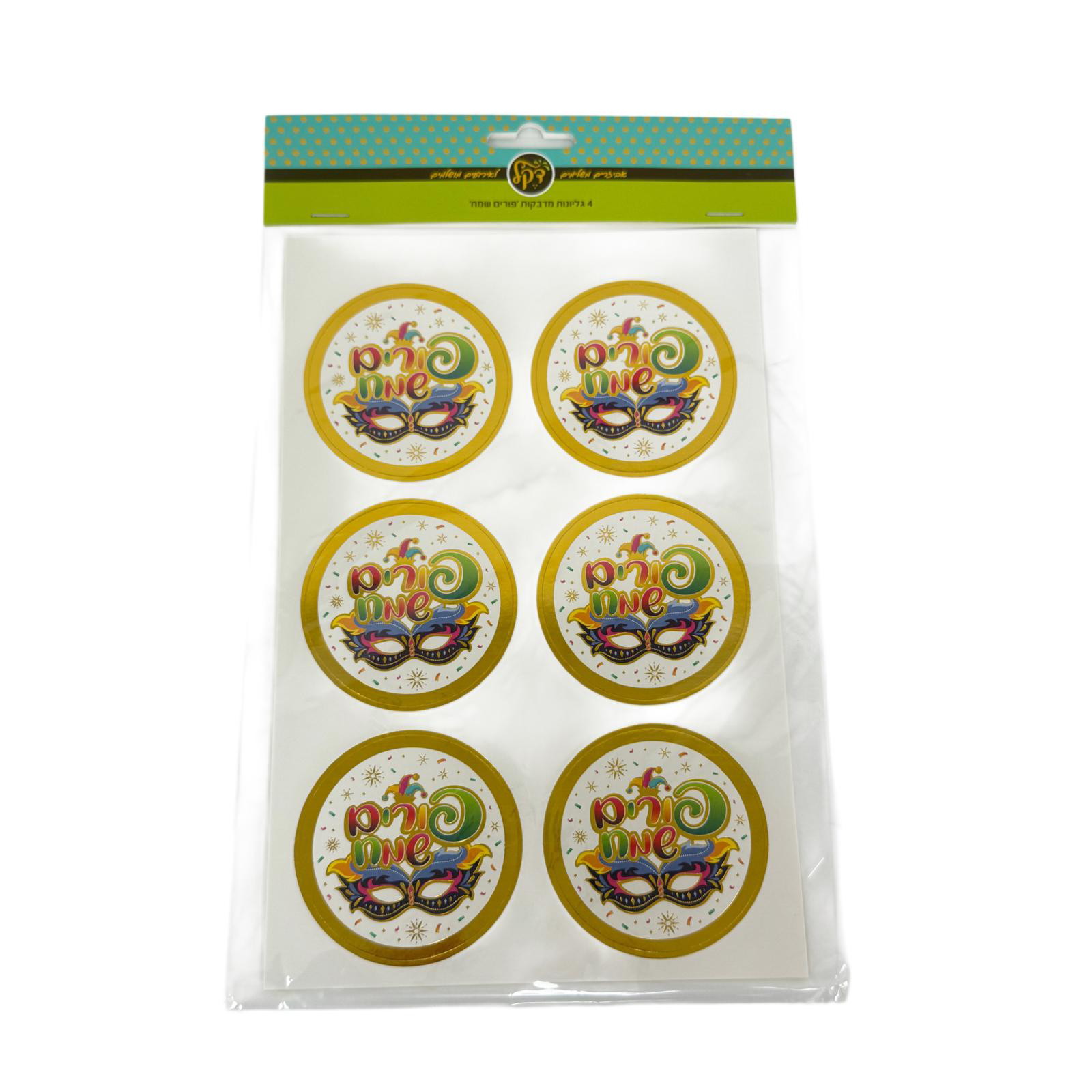 כמות של חבילת 4 גיליונות מדבקות- פורים שמח מסכה
