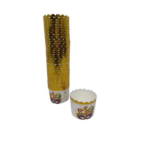 חבילת 40 עטרות קרטון לאפיה גובה 5.5 ס"מ קוטר 7 ס"מ- פורים שמח מסכה