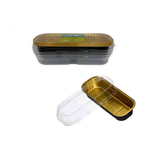 חבילת 5 תבניות אלומיניום שחור/זהב+ מכסה רוחב 16.5 אורך 6.3 גובה 3 ס"מ 220 מ"ל