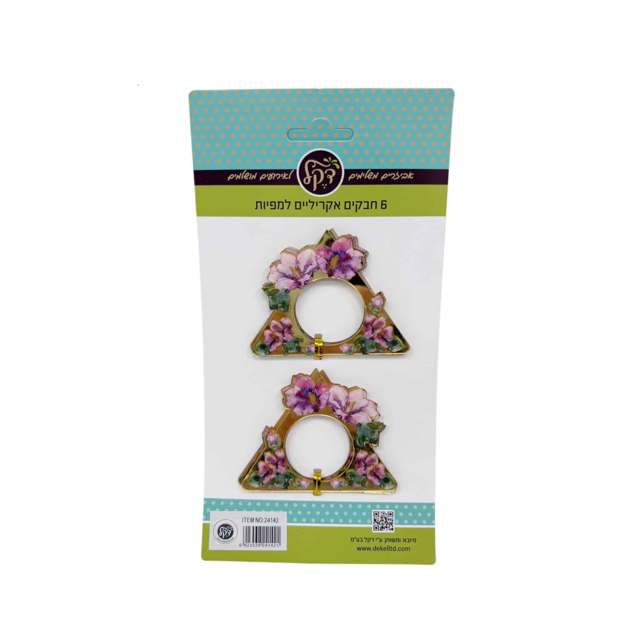 חבילת 6 חבקי מפיות אקרילי משולשים- פרחים ורודים