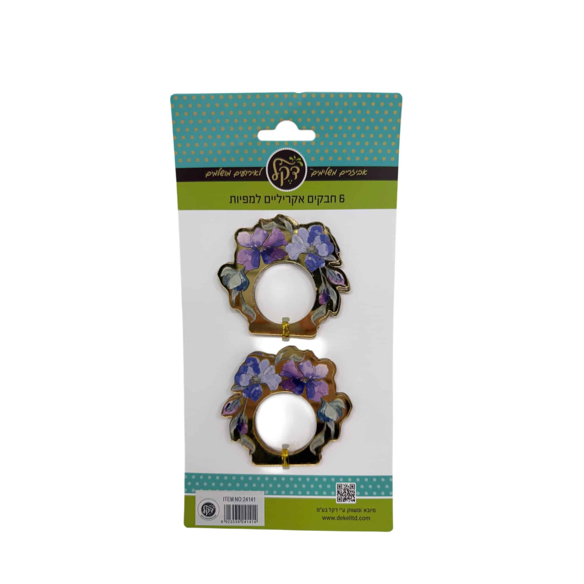 חבילת 6 חבקי מפיות אקרילי עגולים- פרחים סגולים