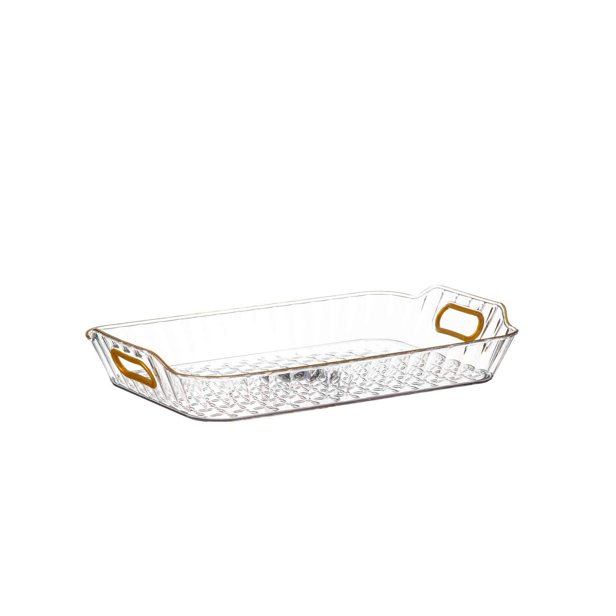 מגש פלסטיק מלבני +ידיות- מסגרת זהב רוחב- 26 ס"מ אורך- 17 ס"מ גובה- 4 ס"מ