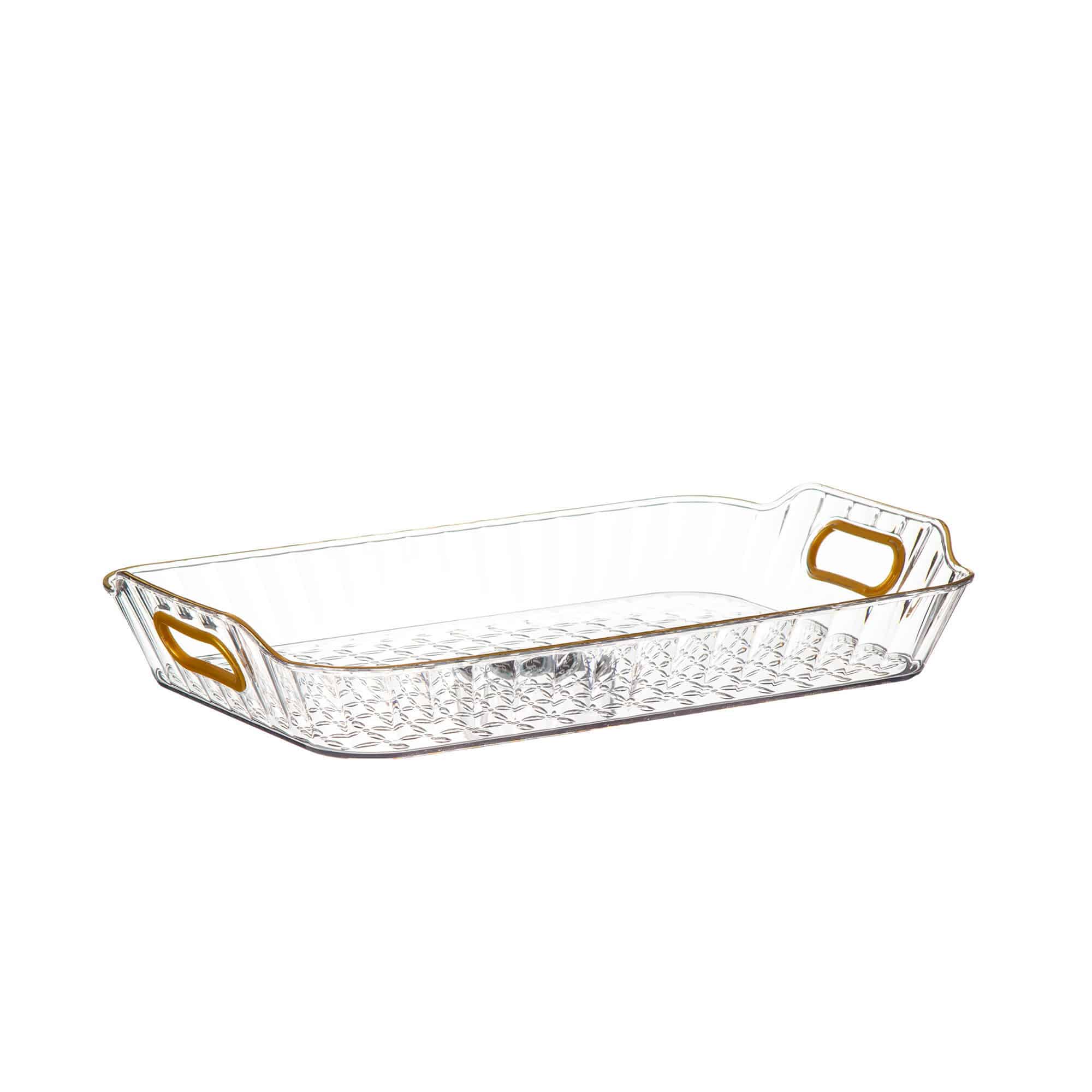 מגש פלסטיק מלבני +ידיות-מסגרת זהב רוחב- 30.5 ס"מ אורך- 20 ס"מ גובה- 3.6 ס"מ