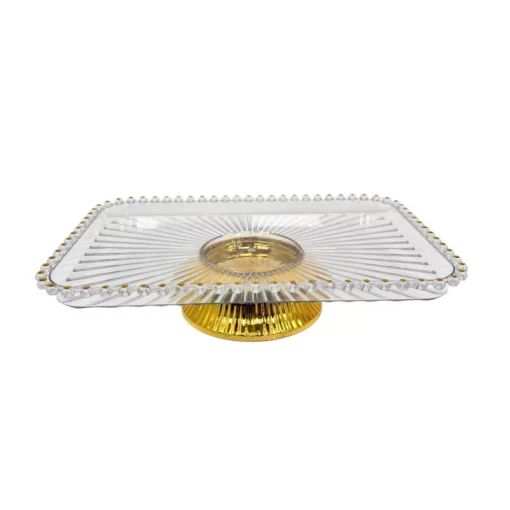 מעמד פלסטיק שקוף לעוגה רוחב 33 ס"מ אורך 21 ס"מ גובה 7 ס"מ- עיטורים ורגל זהב