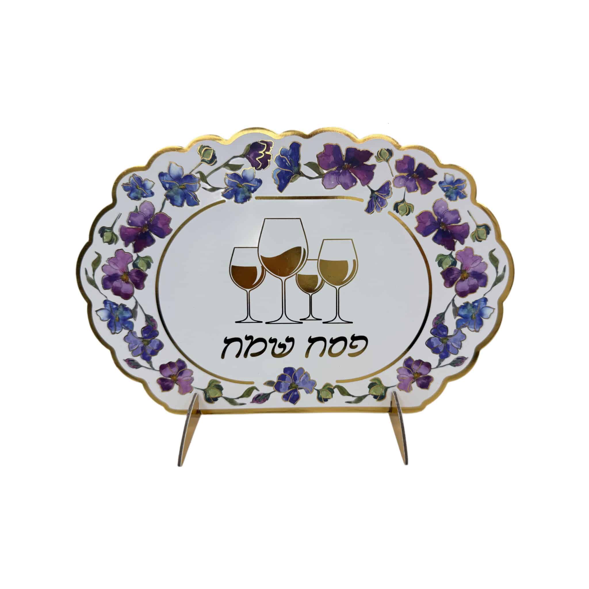 מרכז שולחן מקרטון 28/20 ס"מ- פסח שמח ארבע כוסות ופרחים