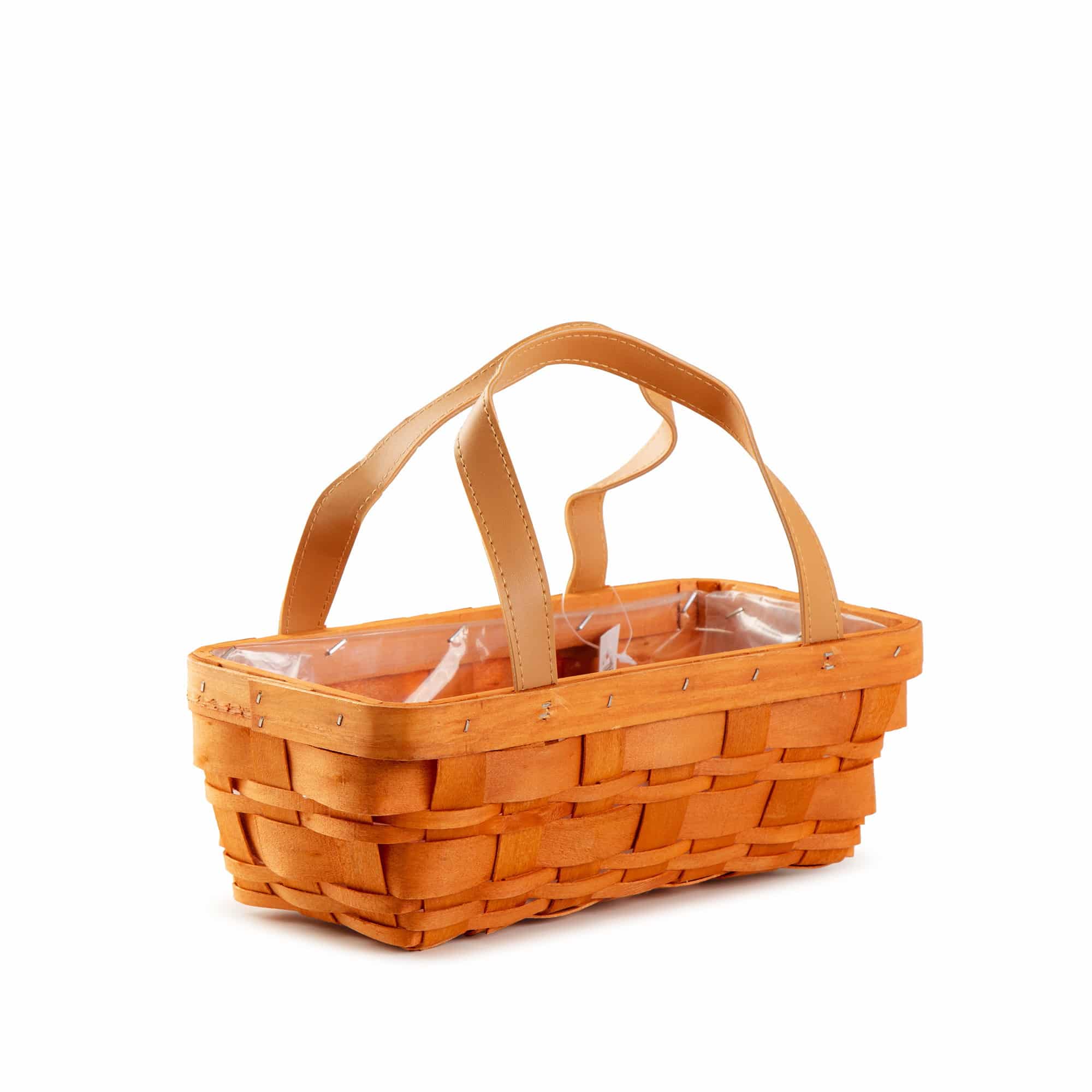 סל עץ קלוע ידיות עור עם ניילון בפנים- חום רוחב- 28 ס"מ עומק- 10 ס"מ גובה- 14 ס"מ