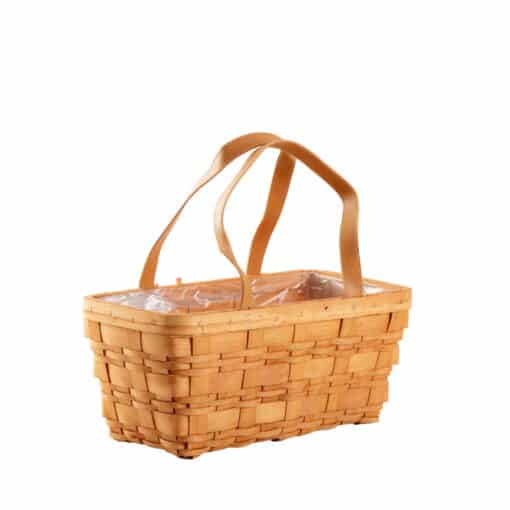 סל עץ קלוע ידיות עור עם ניילון בפנים- חום רוחב- 33 ס"מ עומק- 15 ס"מ גובה- 17 ס"מ