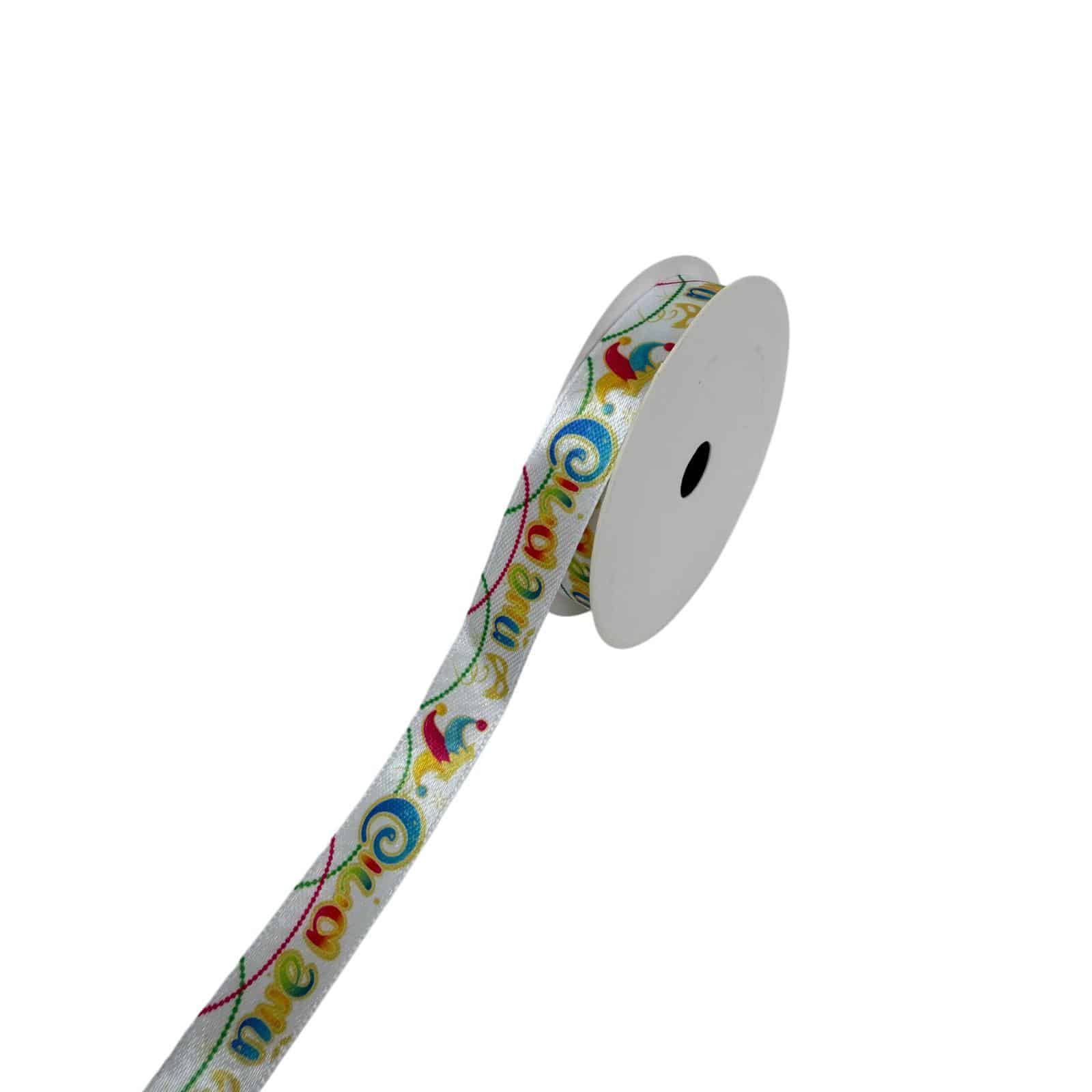 סרט סאטן רוחב 1.5 ס"מ אורך כ-9 מטר- פורים שמח דגם כובע ליצן