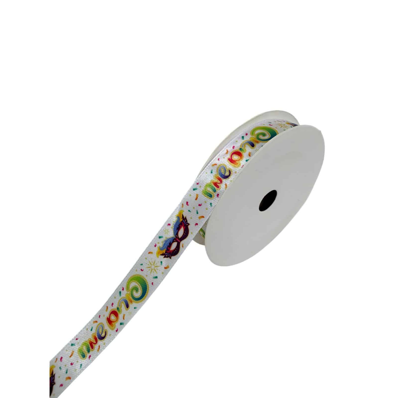 סרט סאטן רוחב 1.5 ס"מ אורך כ-9 מטר- פורים שמח דגם מסכה