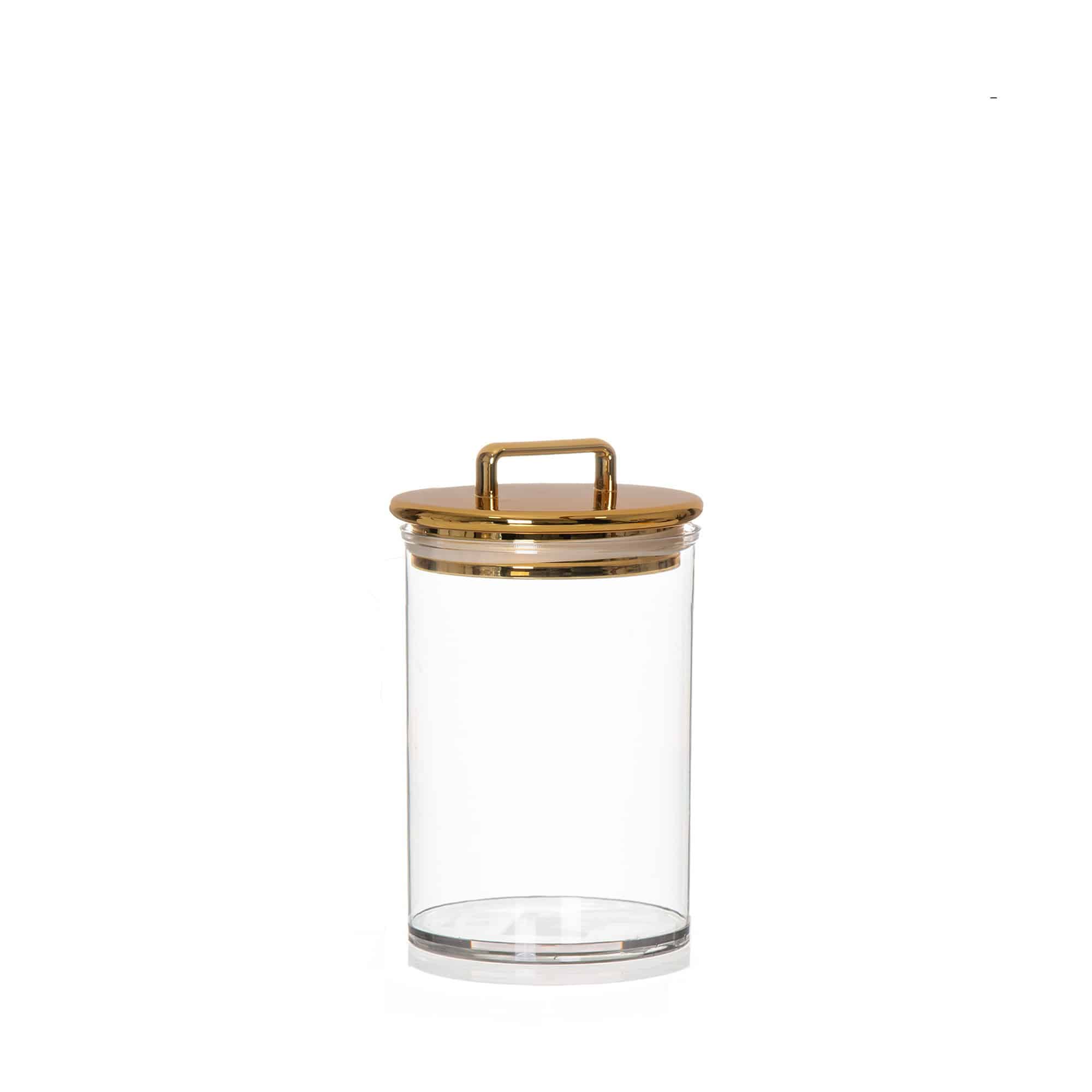 קופסת אחסון מפלסטיק קוטר 10 גובה 16 ס"מ מכסה זהב