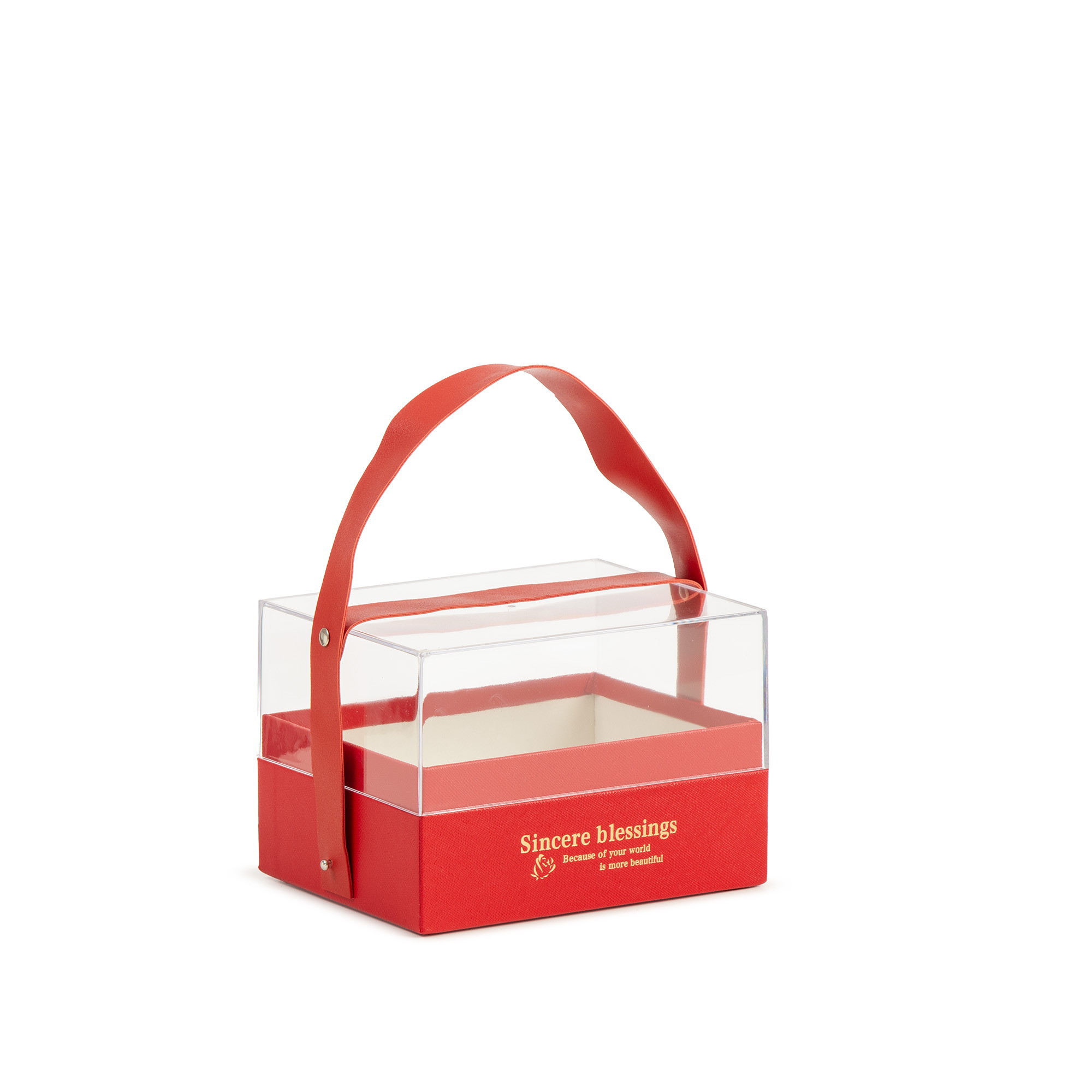 קופסת מתנה מקרטון עם ידית מכסה אקרילי- אדום רוחב- 13.5 ס"מ אורך- 12.5 ס"מ גובה- 17.5 ס"מ