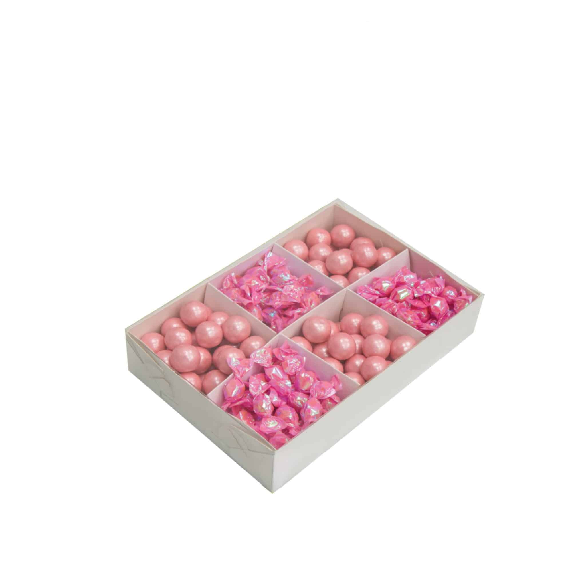 קופסת קרטון מחולקת מכסה PVC שקוף 6 תאים רוחב 13 ואורך 9.5 ס"מ גובה 3 ס"מ- לבן