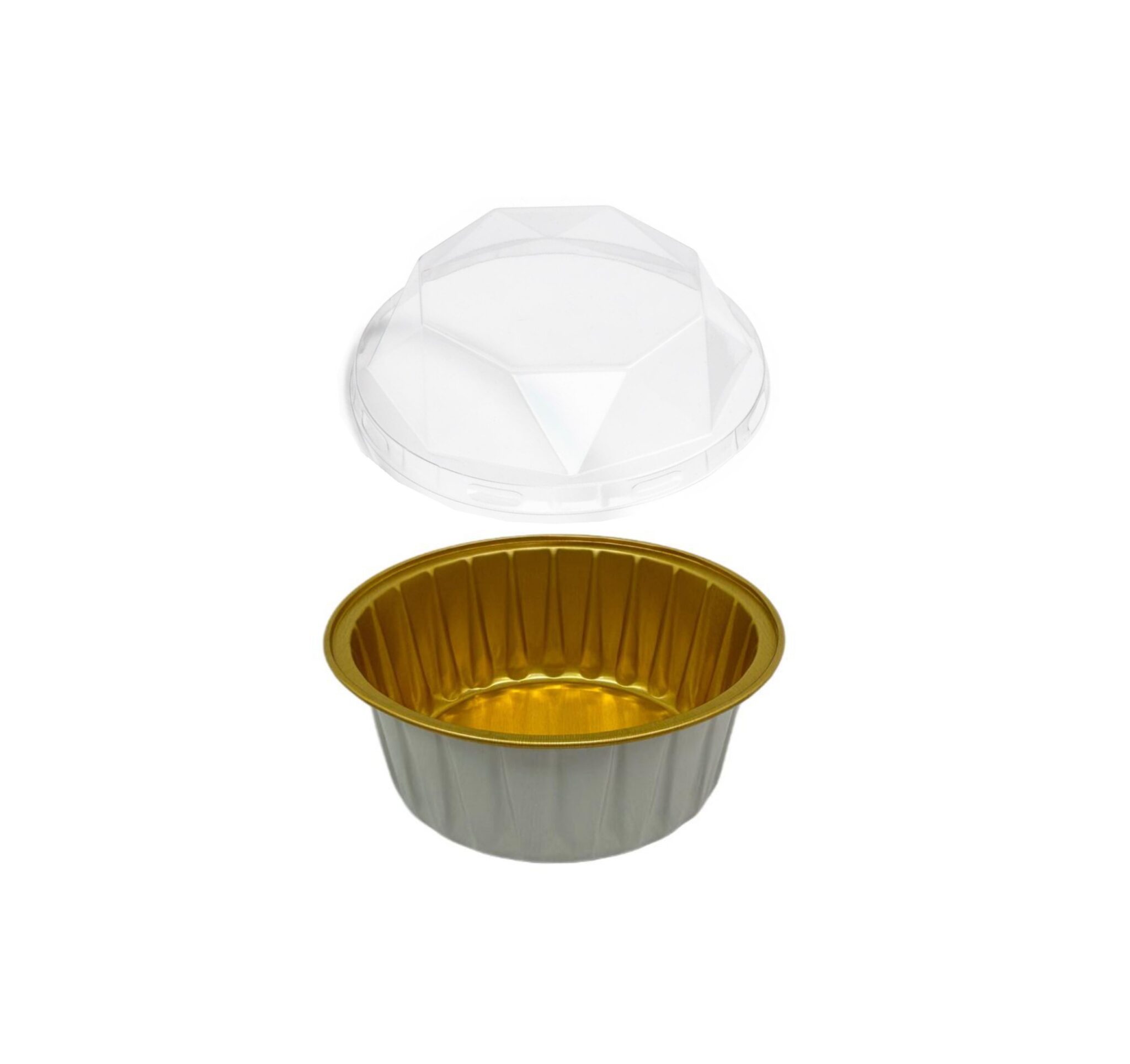 תבניות אלומיניום לאפיה קרם/זהב+ מכסה יהלום 140 מ"ל