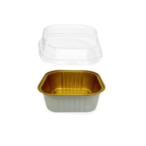 100 תבניות אלומיניום לאפיה קרם/זהב+ מכסה רוחב ואורך 9 ס"מ גובה 3.5 ס"מ 190 מ"ל