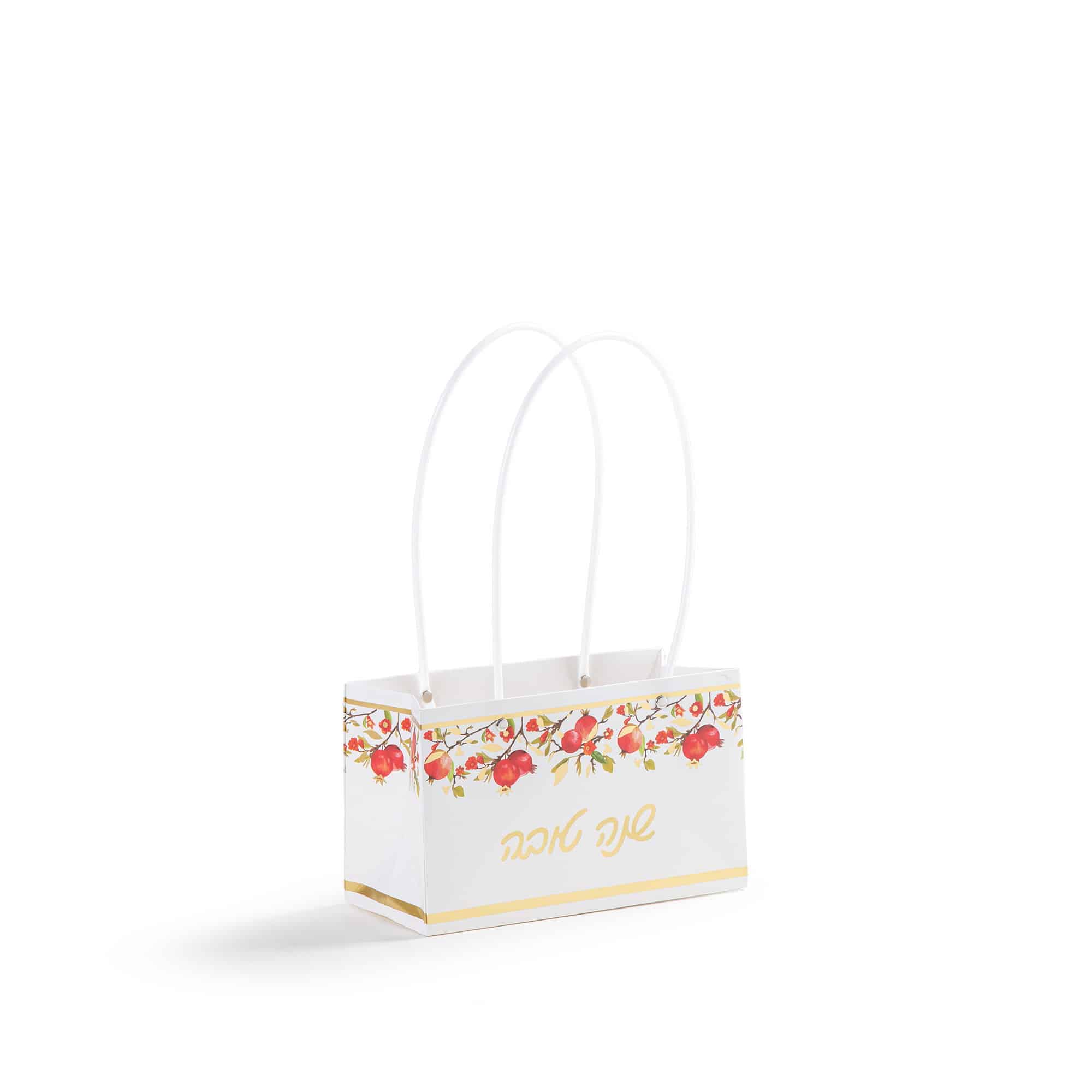 10 תיקי נייר+ ידיות פלסטיק 22/10 גובה 13.5 ס"מ שנה טובה רימונים