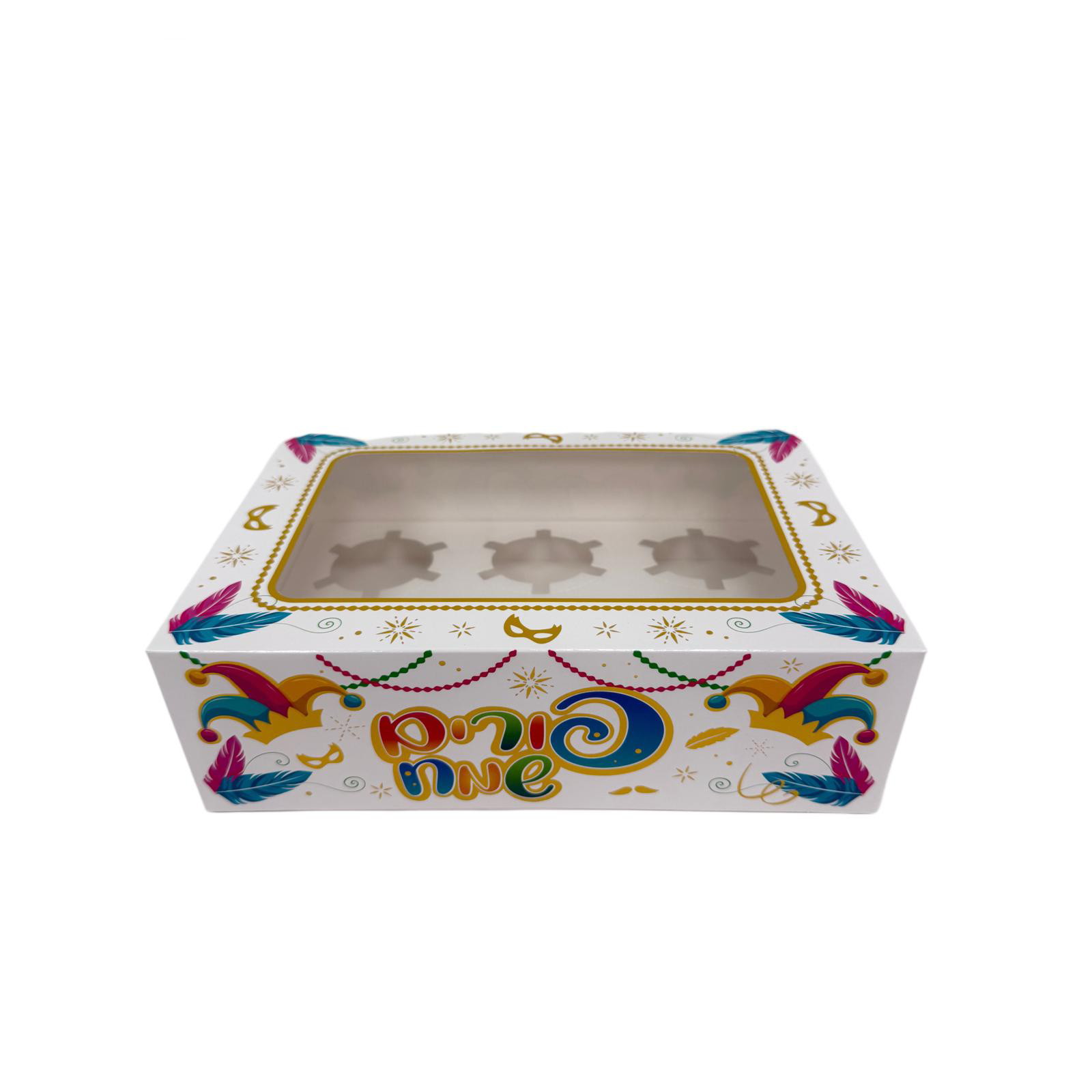 12 קופסאות קרטון ל6 קאפקייקס- פורים שמח כובע ליצן