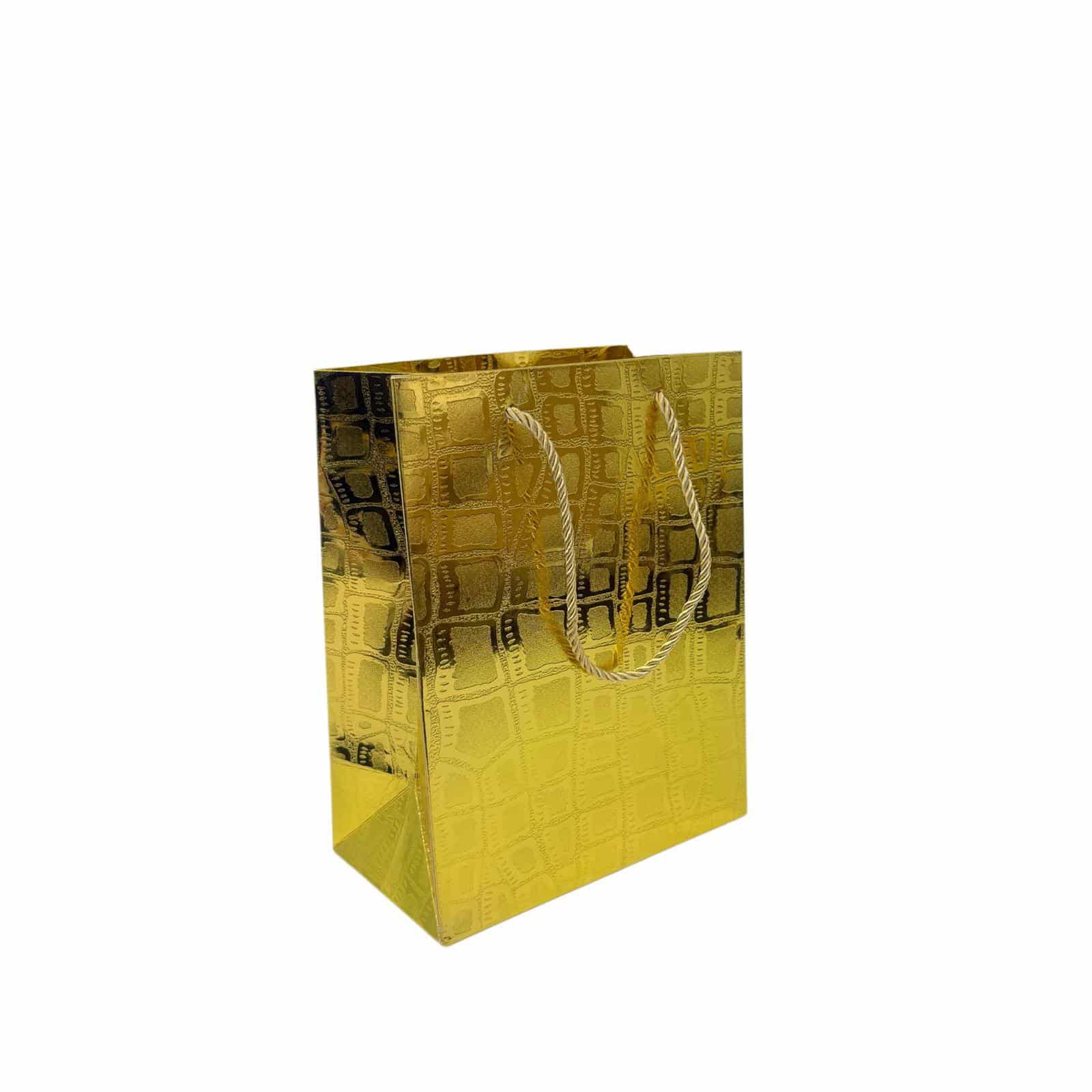 12 שקיות נייר דמוי עור זהב מטאלי