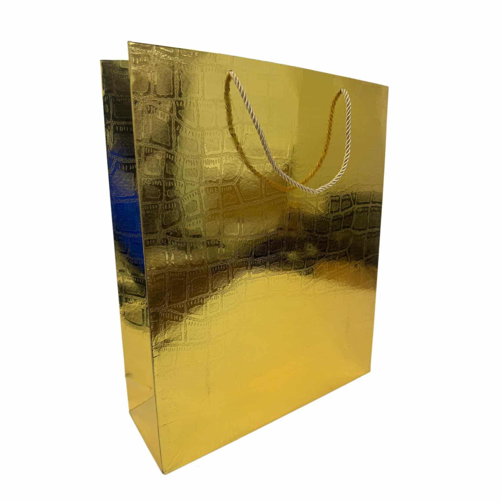 12 שקיות נייר דמוי עור זהב מטאלי גובה 38 ס”מ רוחב 31 ס”מ עומק 11 ס”מ