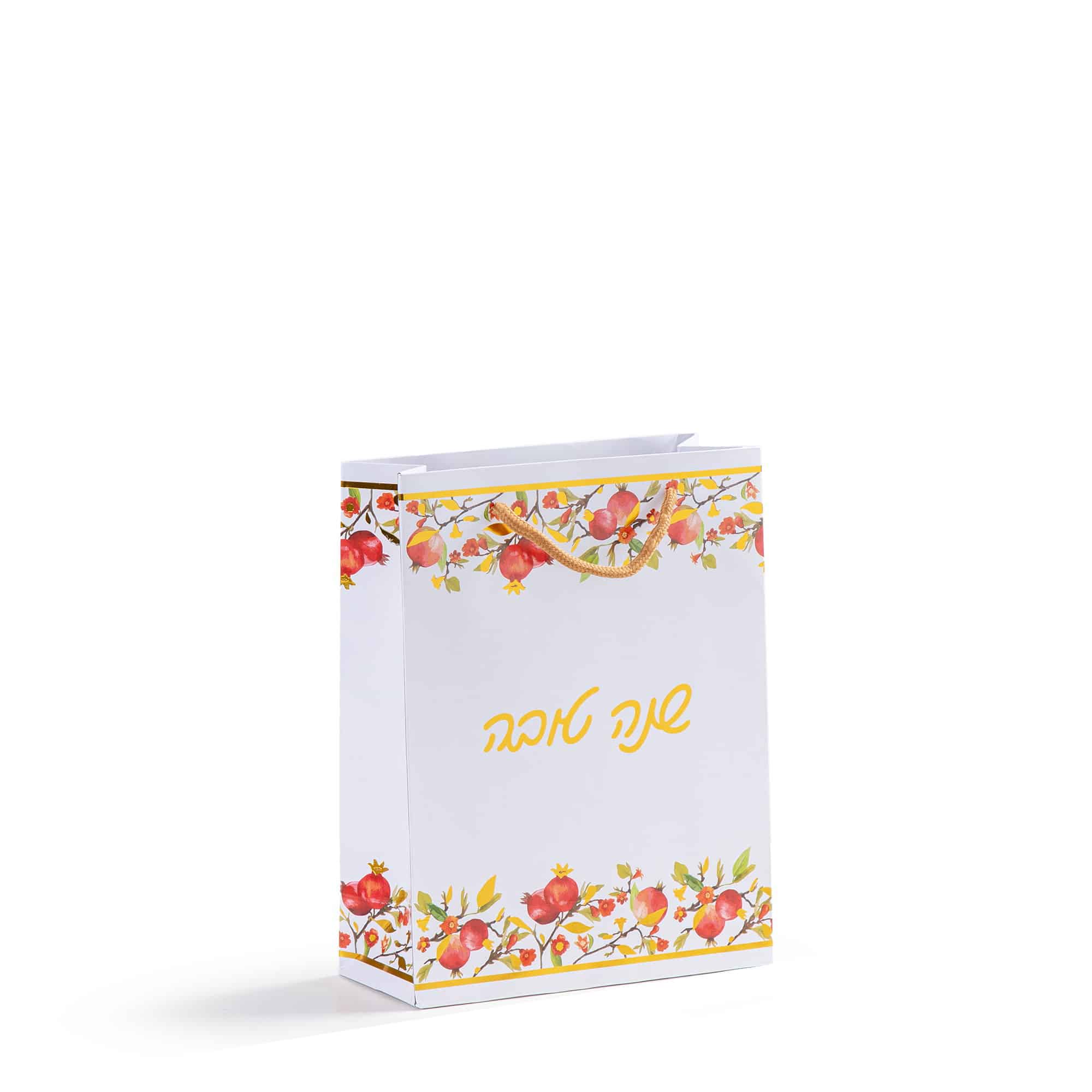 12 שקיות נייר 24.5/19/8 ס"מ-שנה טובה רימונים גובה 24.5 ס"מ רוחב 19 ס"מ עומק 8 ס"מ
