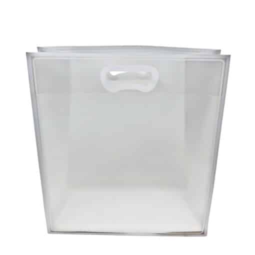 12 שקיות פלסטיק שקופות מסגרת לבנה גובה- 36 ס"מ רוחב- 30 ס"מ עומק- 12 ס"מ