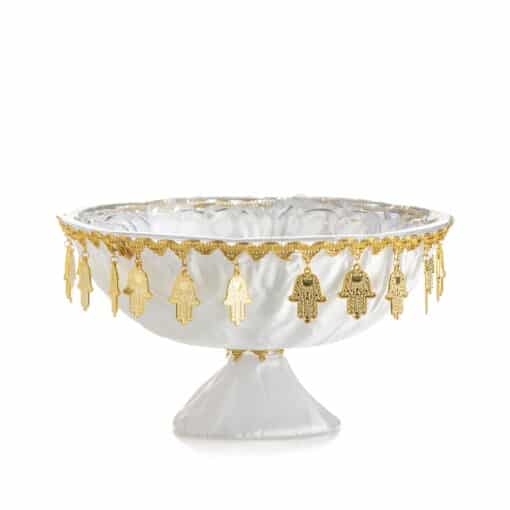 3 גביעי פלסטיק לחינה מצופים בד עיטורי חמסה צבע לבן קוטר 25 גובה 15 ס"מ
