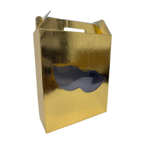 6 קופסאות קרטון+ חלון מסכה גובה 30 ס"מ רוחב 25 ס"מ אורך 9 ס"מ -זהב מטאלי