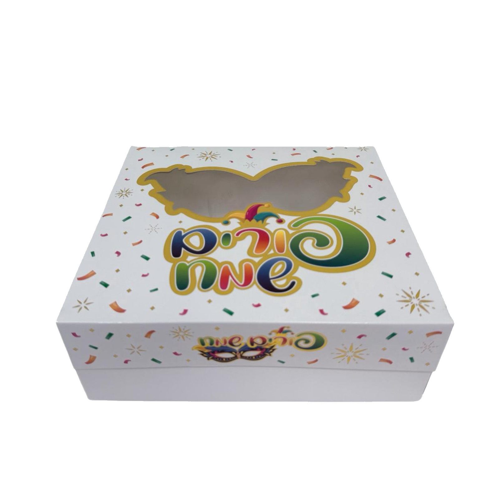 6 קופסאות קרטון+ חלון- פורים שמח מסכה גובה- 9 ס"מ רוחב- 28 ס"מ אורך- 26 ס"מ