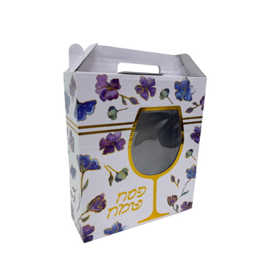 6 קופסאות קרטון+ חלון- פסח שמח ארבע כוסות ופרחים כיתוב זהב גובה- 30 ס"מ רוחב- 25 ס"מ אורך- 9 ס"מ